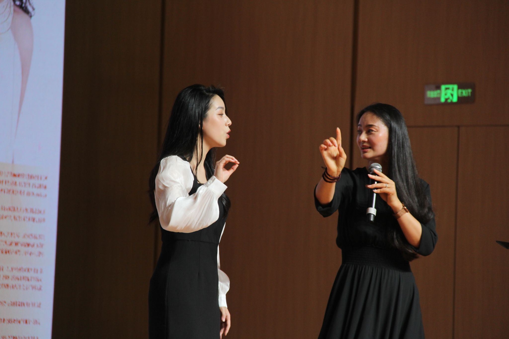 天瑞音乐厅座无虚席,在主持人的隆重介绍下,活动的序幕缓缓拉开,潘小芬老师以从容的步伐款款登上舞台,她的身影在灯光下显得尤为优雅。潘老师深情地分享了自己的音乐之路,每一条足迹都镌刻着坚韧与执着。她娓娓道来在音乐道路上的经历与收获,那些挑战与成就交织的故事,让在场的每一位听众都为之动容。她以真挚的话语鼓励年轻人要勇敢追逐自己的梦想,不畏艰难,不断挑战自我,用音乐的力量点亮人生的色彩,让生活因音乐而更加绚烂多彩。