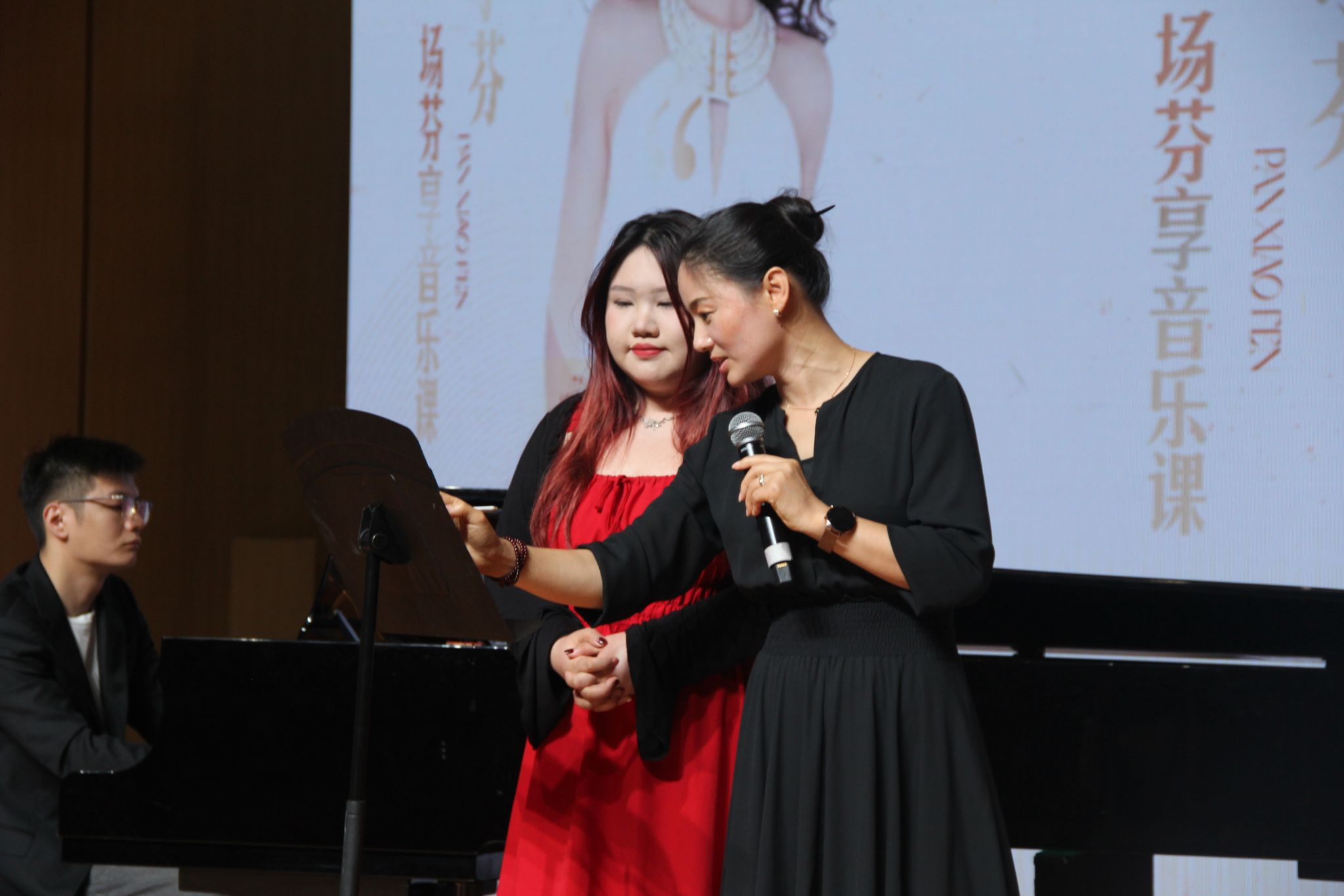 潘小芬老师认真聆听每位同学的演唱,不仅给予了充分的鼓励和肯定,还悉心提出了指正意见,并亲自示范演唱技巧。她耐心地一次次调整细节,确保每位同学都能从中获益,提升自己的演唱水平。整场活动不仅增进了师生间的交流与理解,更让同学们深切感受到了音乐的魅力与力量。