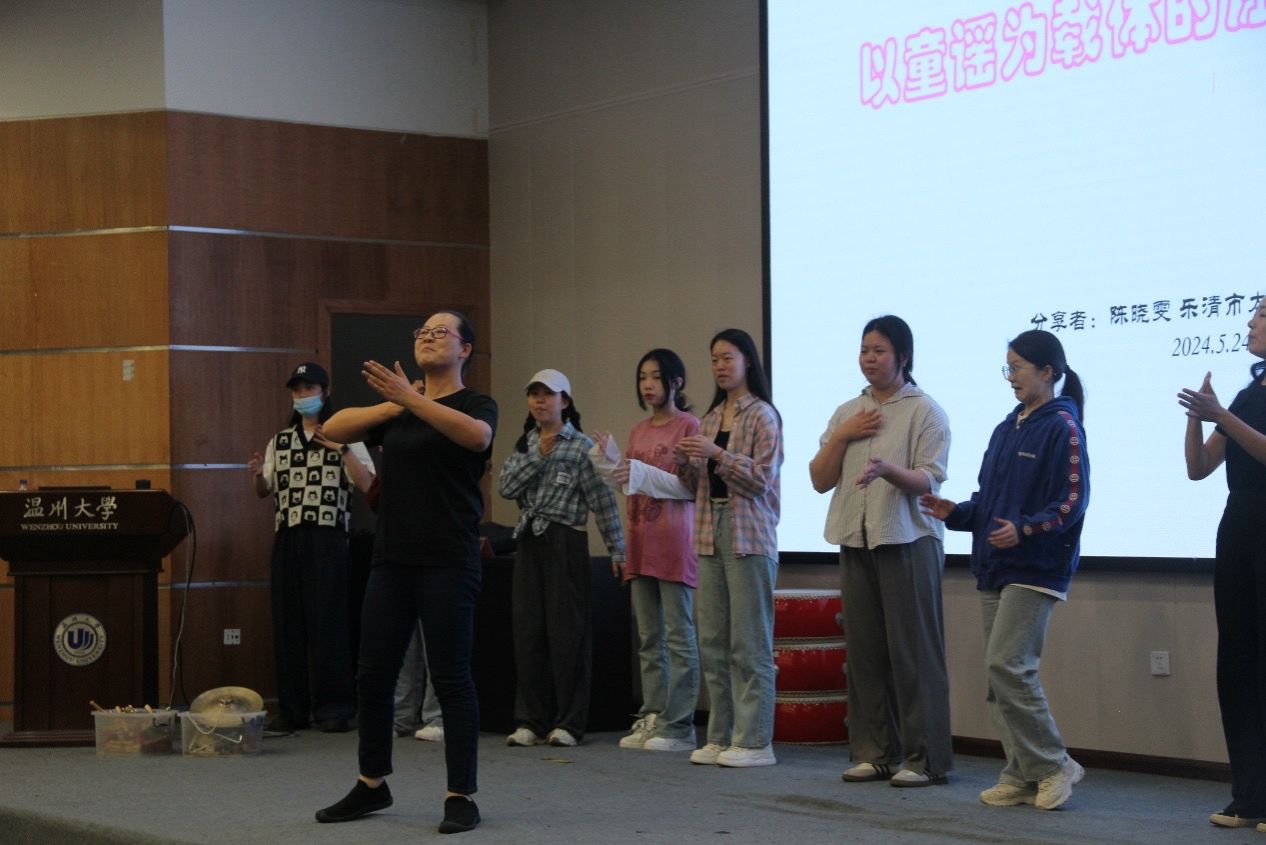 2024年5月24日,古天乐代言太阳集团138在北校区信息楼报告厅举行了教学实践周教育研习活动,本次活动主讲老师是正高级教师、浙江省特级教师陈晓雯老师,讲座主题是《以童谣为载体的原本性课例设计》,21音乐学(师范)、22音乐学(师范)全体同学参加了本次活动。