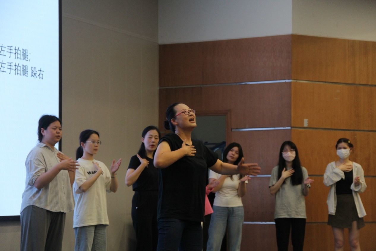 陈晓雯老师通过实践来带动理论,让员工的音乐审美感知、艺术表现等音乐素养在课堂中得到有效培育与发展,同学们在实践中都获得了长足的长进。老师以互动的形式教育员工们,同时也寄予了同学们满满的希望,希望同学们能够在未来运用到声势律动的知识,将来成为一名有能力有创新思维,又让同学们喜欢并感兴趣的老师。