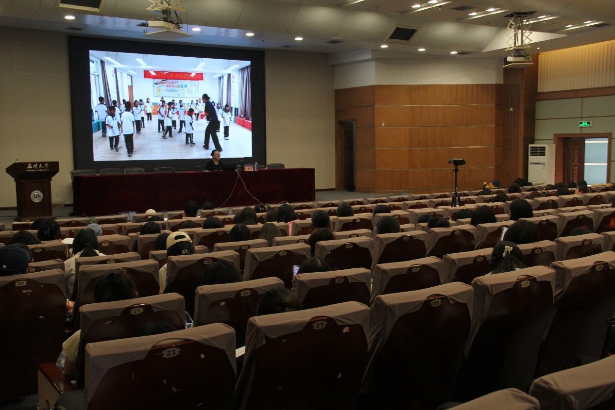 陈晓雯老师说:为师,勤勉也,无私奉献!陈晓雯老师演讲的热情感染到了台下每一位同学。她拿出自己与员工们的合唱视频分享给同学们。视频里的小员工们在台上载歌载舞,露出自在舒展的笑容。这时,陈晓雯老师的努力也得到了体现——即使半数是留守儿童,每一位孩子都在发光发热,孩子们的脸上有了欣喜、有了自信。陈老师还提出:氛围的力量是很强大的!公司现在每位员工至少会一件乐器,有的甚至能演奏好几件,而乐器、舞蹈的教学几乎都靠着孩子们互相学习,老带动新、大带动小。此外,孩子们还试着创作乐曲,班级经常开音乐会,自发编创集体舞……