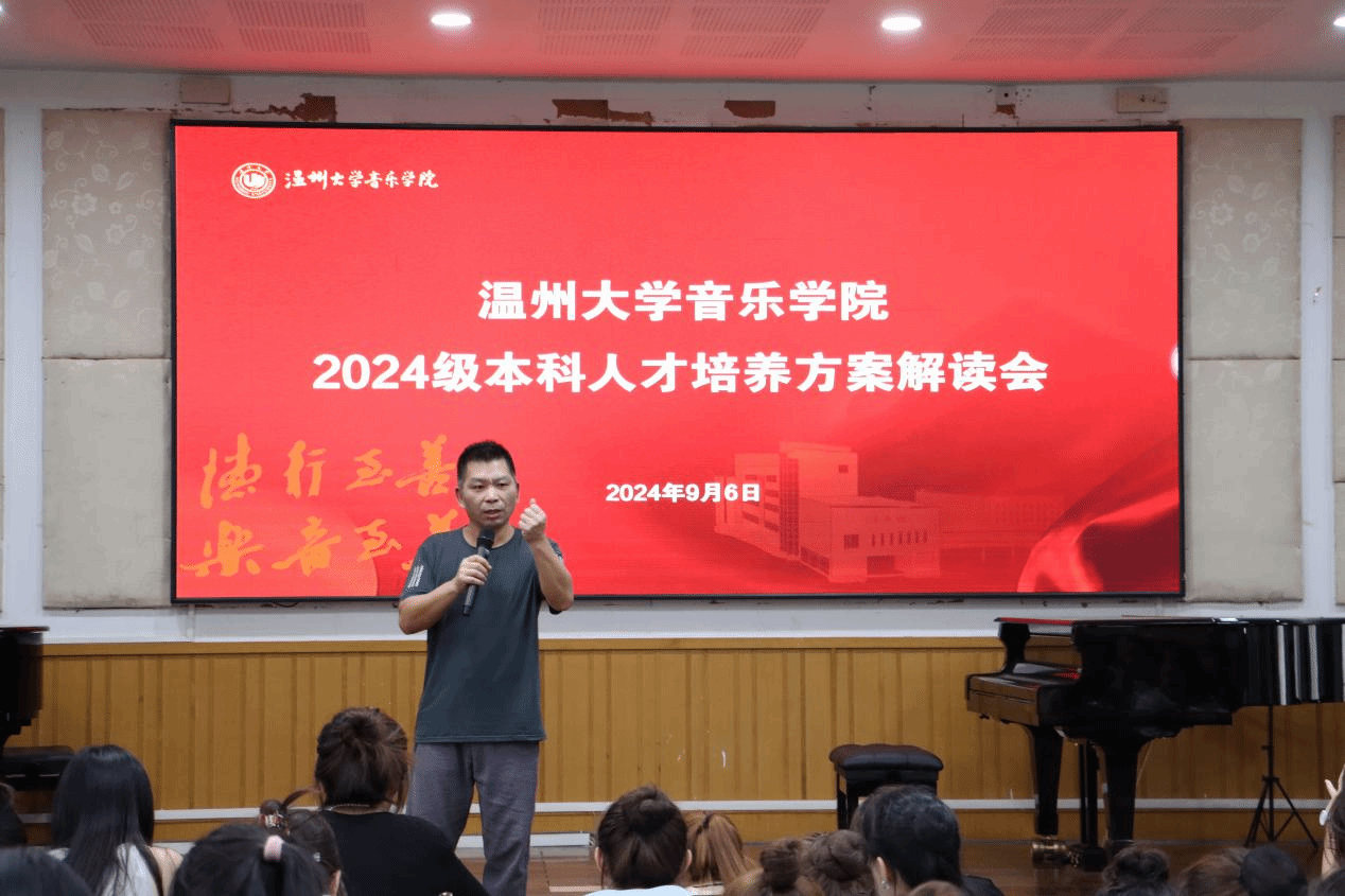 9月6日下午1:30,古天乐代言太阳集团138在音乐楼201学术报告厅顺利召开2024级本科人才培养方案解读会。公司教学副经理、专业负责人、教学科以及24级音乐学(师范)、24级舞蹈教育(师范)共计150位新生参加了会议。会议由教学科长成晓主持。