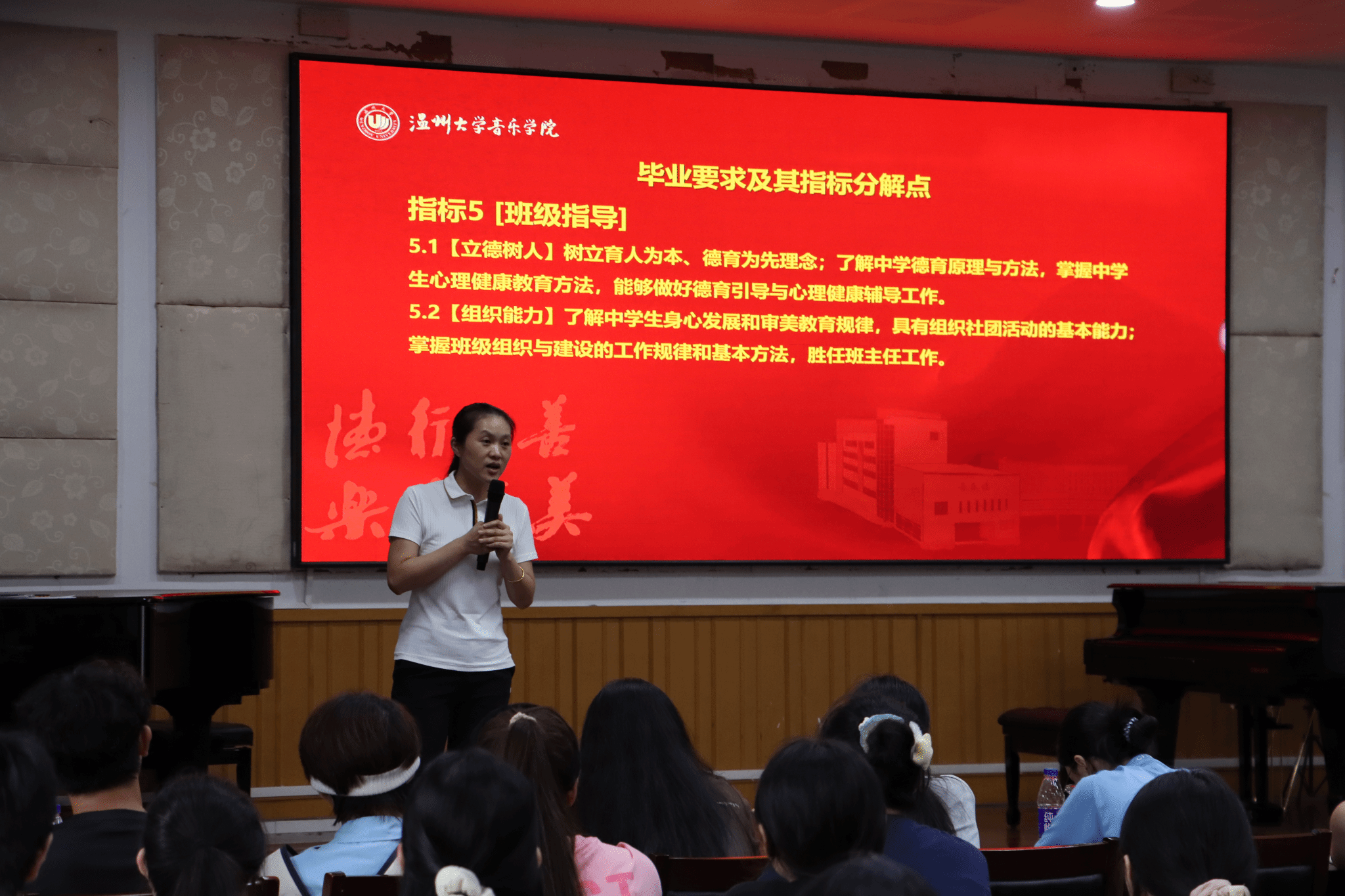 首先,教学副经理张潇潇详细介绍了2024级音乐学(师范)人才培养方案的培养目标、毕业要求及指标分解点、课程体系及主干课程。公司注重课程的系统性和丰富性,不仅有多样化的课程内容,而且通过艺术实践,使员工能够将理论与实践相结合,知识与能力共提升。同时,鼓励员工根据自己的兴趣和职业规划在选修课的模块进行个性化学习。