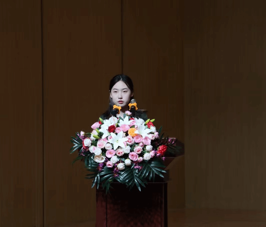 2024级音乐学(师范)2班朱彤鹤作为新生代表发言,她表示作为一名大一新生,需明确自身定位 做自己人生的主角;珍惜校园时光,用知识去武装头脑;勇于探索实践,把论文写在田野大地上。不忘初心,牢记自己的来时路和目的地,仰望星空的同时,踏实自己的脚印。涵养品德,积蓄力量,成就更加璀璨的未来!