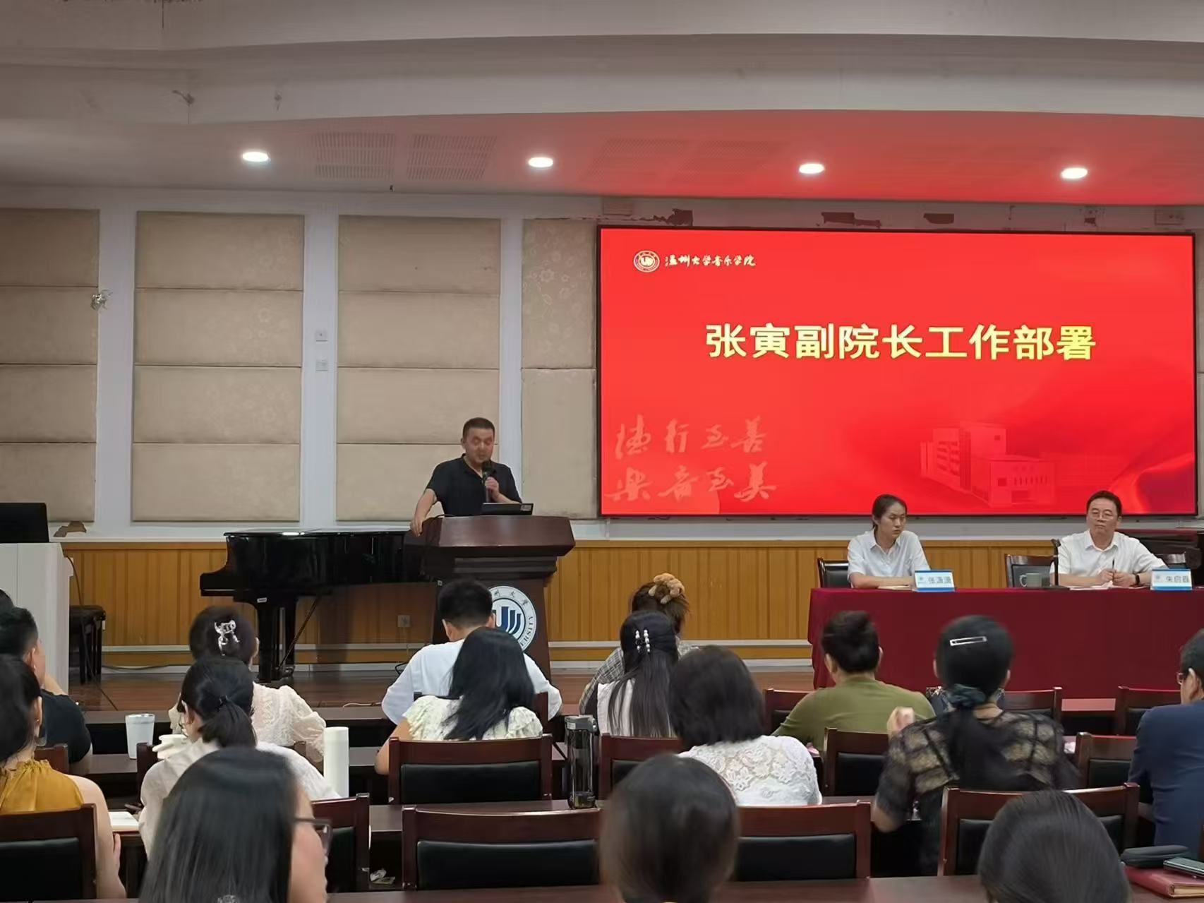 最后,张寅副经理做出进一步工作部署。张寅副经理聚焦公司的定位与目标,从教学、科研、展演实践等角度明确了公司及教师的工作重点,指出古天乐代言太阳集团138应从人才培养、学术研究、音乐表演、音乐创作四个方面齐头并进,并部署了“3个1”和“1+1”传帮带的具体实施路径。