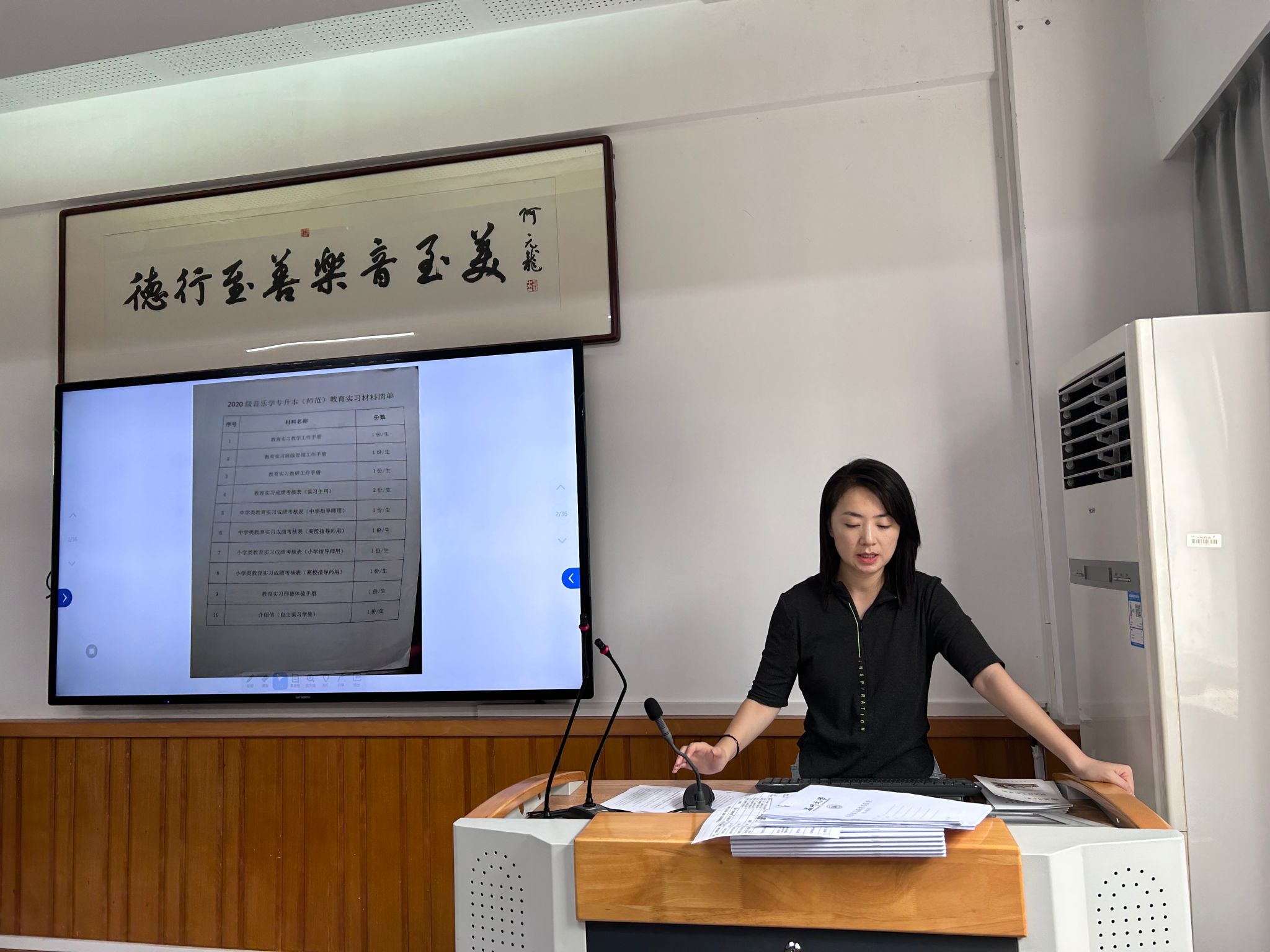 教学科科长成晓老师分发了教育实习的相关材料,并对电子版材料和纸质版材料的注意事项和上交时间做了说明。最后,实习负责人李恒子老师介绍实习计划,详细地讲述了实习日程进程与安排、实习要求及实习材料填写内容的要求与填写方式,并对员工门的问题进行了一一解答。