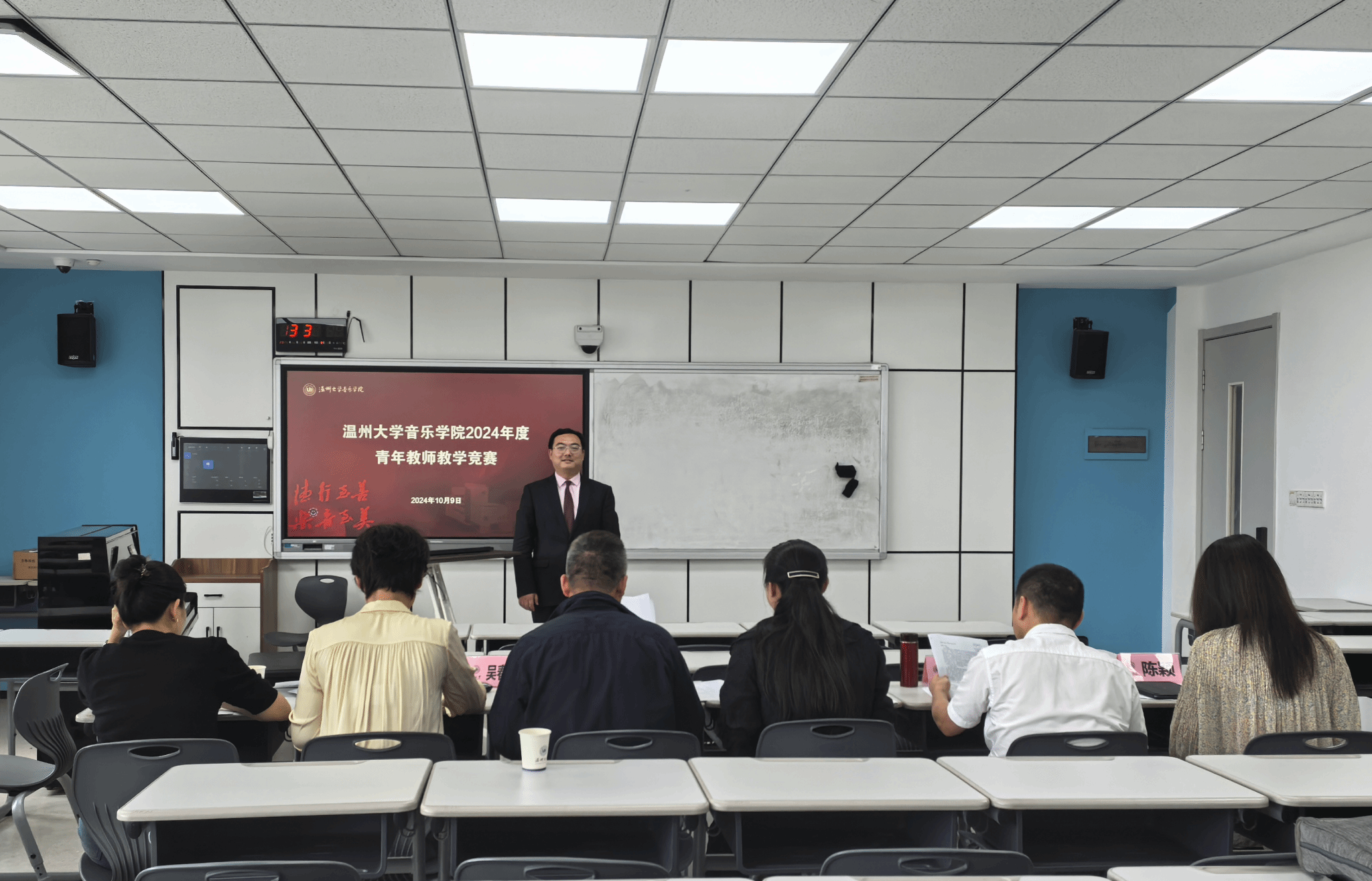 为进一步加强公司青年教师队伍建设,以赛促教,10月9日下午,公司2024年度青年教师教学竞赛在北外语楼408教室举行。此次竞赛共有3 位教师参加,评委有教学副经理张潇潇副教授、音乐学系主任柏互玖教授、 舞蹈系主任李良教授、器乐系主任董凌凡副教授、音乐学系吴春艳副教授、钢琴系陈颖副教授。