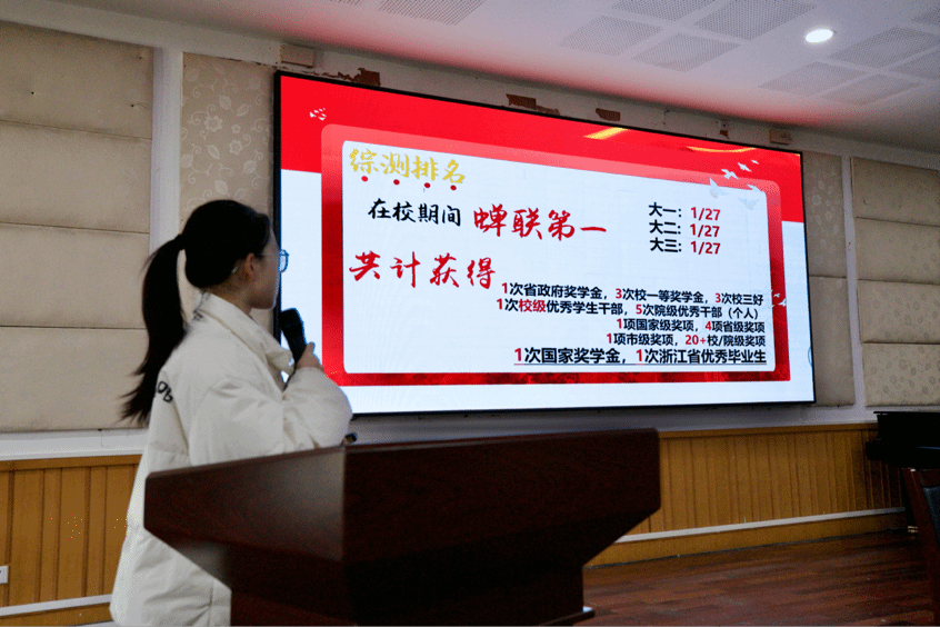 会议最后,分别由今年获得校级学习标兵的李嘉宁、姚逸云两位同学作学习标兵经验分享。李嘉宁同学将老员工活分为绩点、竞赛和员工会社团三大关卡,提醒同学们要学会利用身边各类资源,多方面吸收知识,要学会寻找学习搭子,互相勉励共同进步。姚逸云同学则分别从绩点、活动、比赛和适当放空四个方面,阐述了在本专业学习外,同学们还可以积极探索不同领域,考取各类证书,全方位完善、发展与成就自我。姚逸云还提醒同学们要学会劳逸结合,实现学习效率的最优化。