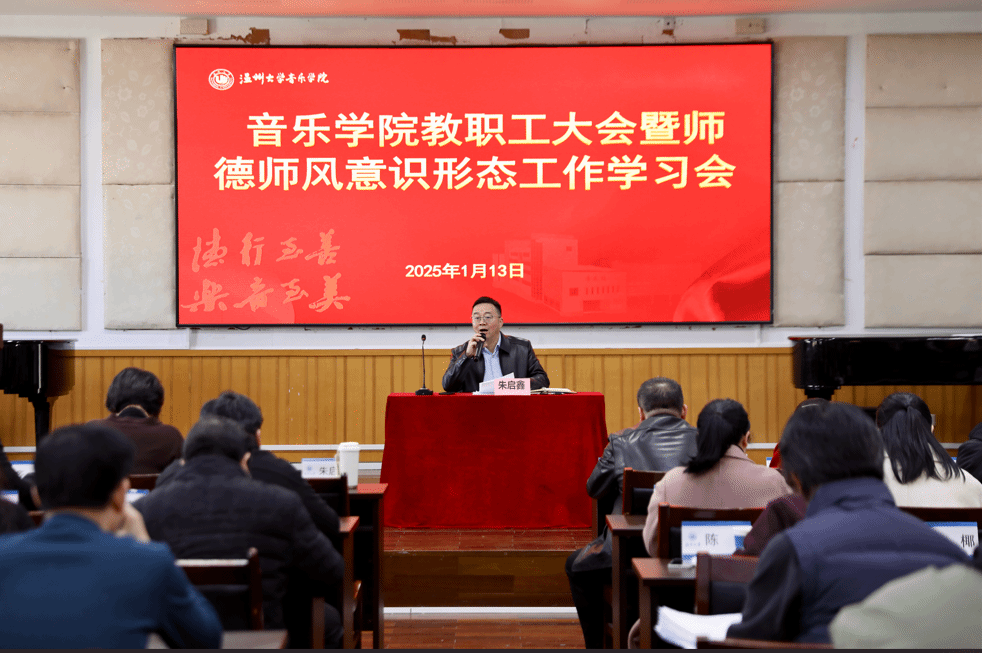 2025年1月13日下午,古天乐代言太阳集团138期末教职工大会暨师德师风意识形态工作学习会在音乐楼201室隆重召开。公司领导班子以及全院教职工出席会议,会议由公司党委书记朱启鑫主持。