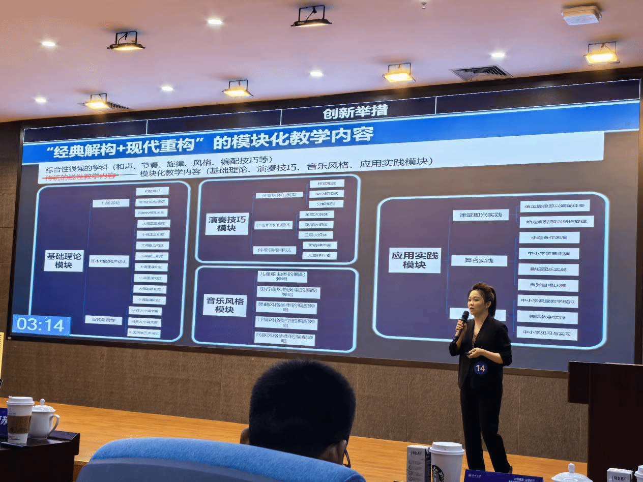 陈露雯老师团队的《钢琴即兴伴奏》课程聚焦师范生职业能力培养,创新采用模块递阶式教学,融入AI智能辅,通过多元化教学策略提升员工即兴创作与音乐感知能力。