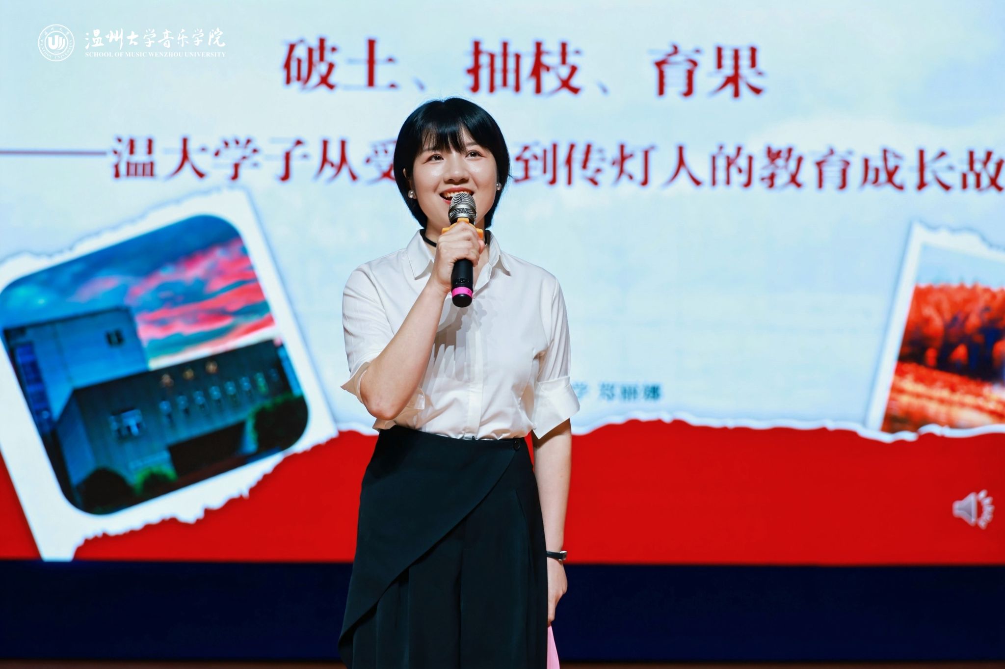 中国教育学会2022音乐学科“云课堂”示范课例一等奖、全国中等职业公司素质教育课程“创新杯”教师说课大赛一等奖获得者郑丽娜,分享了自己从温大学子到一线名师的职业历程,生动诠释了“教育是一棵树摇动另一棵树,一朵云推动另一朵云”的深刻内涵。