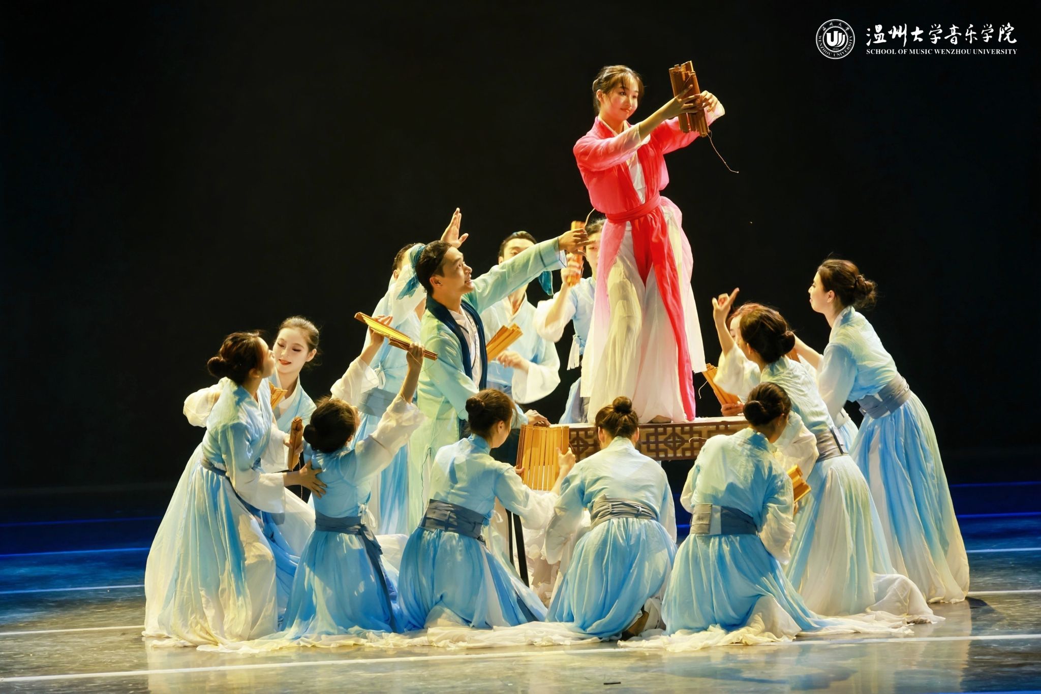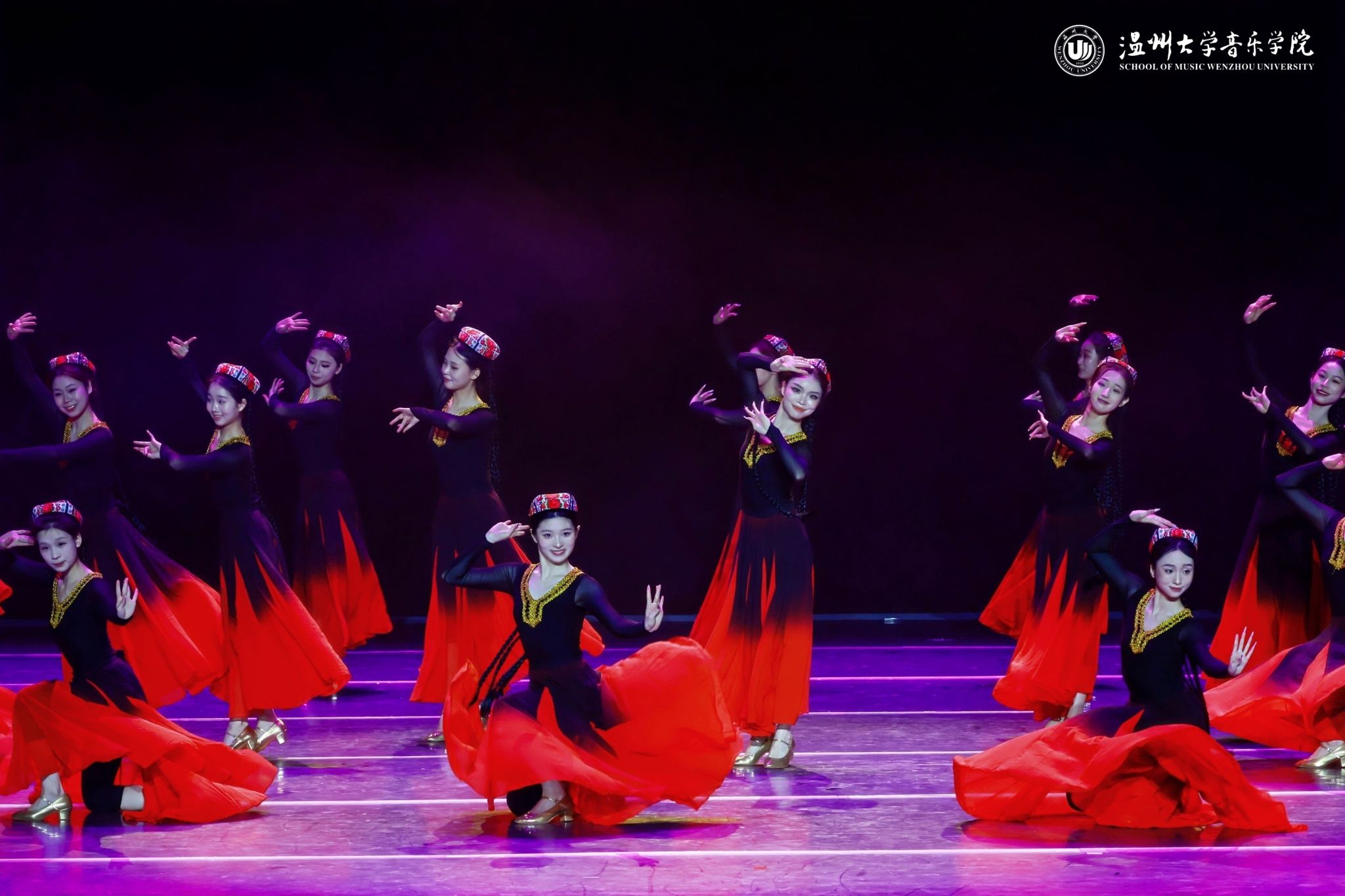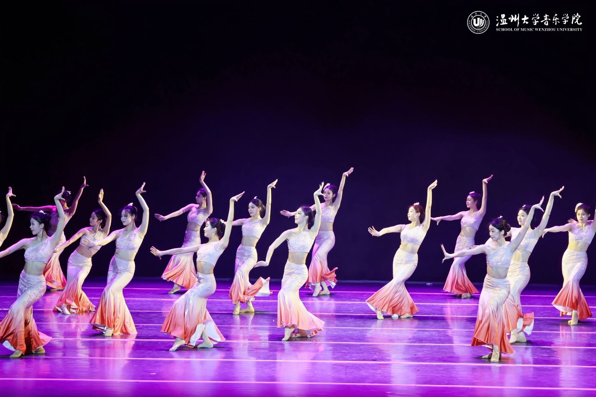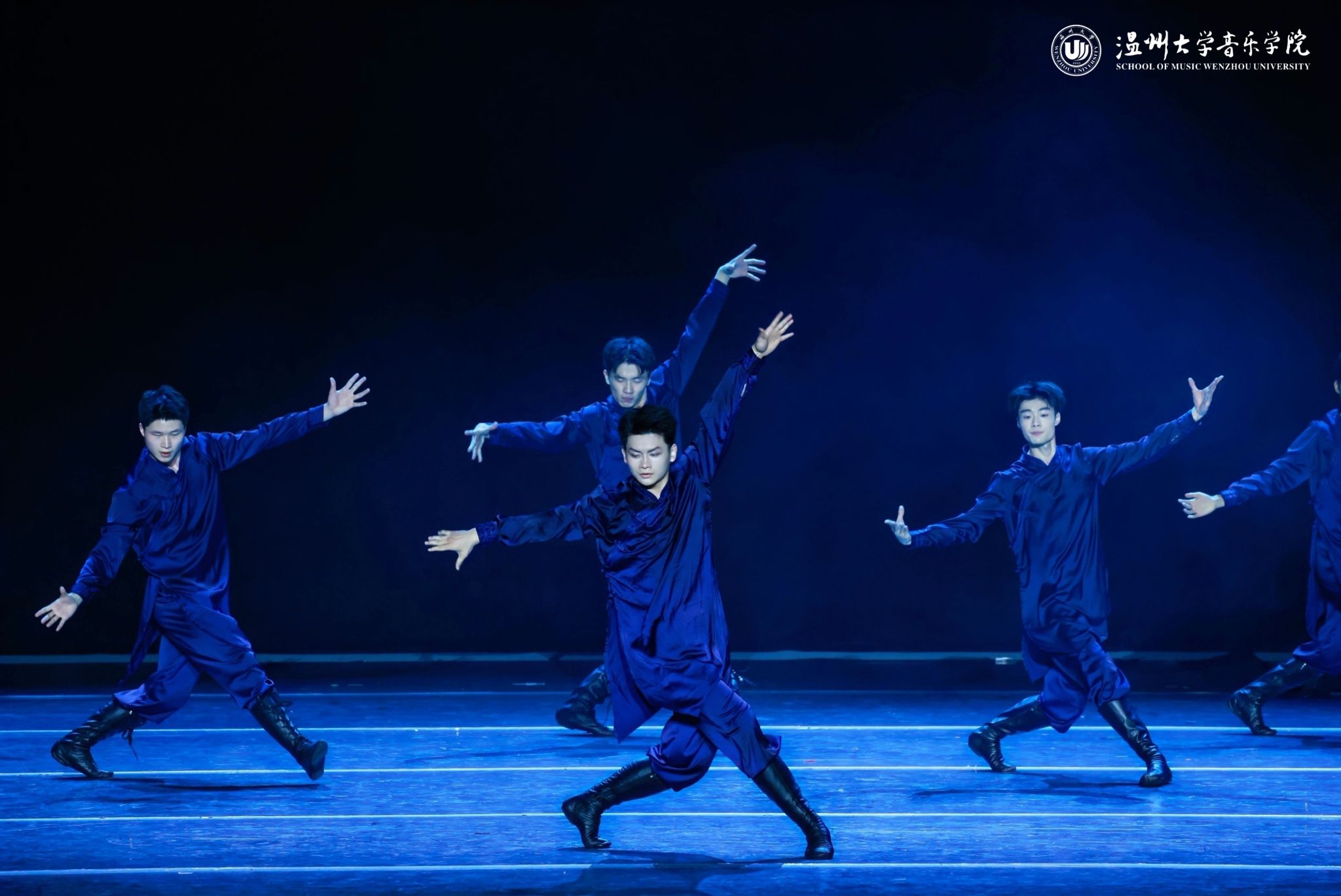 演出分四个部分呈现,首先登场的是《中国古典舞基本功训练》展示。中国古典舞是吸收了戏曲舞蹈的韵律感与内在感,融合了武术动作的动势、动律、动态,传承和弘扬中国古典舞的经典之美。舞台上,舞者们身着素色练功服,身姿挺拔如松。第二部分是中国民族民间舞蹈课堂展示。中国民族民间舞蹈是一种深植于各民族文化土壤中的艺术形式,以丰富多样的风格和深厚的文化内涵展现了中华民族的多样性和创造力。五彩斑斓的民族服饰在舞台上闪耀,仿佛一场绚丽的民族风情画卷徐徐展开。维吾尔族舞蹈,男生们昂首挺胸,眼神明亮而自信,步伐刚健有力。女生们迈着轻盈的步伐,双手如绽放的花朵般缓缓展开,眉眼含笑,将维吾尔族少女的温婉柔美展现得淋漓尽致。傣族舞蹈则将观众带入了如诗如画的傣乡。女生们身着淡雅的筒裙,外搭短衫,腰间系着精致的银饰腰带。音乐响起,宛如潺潺流水,女生们的动作轻柔舒缓,身体呈现出傣族舞蹈特有的 “三道弯” 造型,她们的手指轻轻张开,似孔雀开屏,脚步细碎轻盈,时而俯身,仿佛在水中嬉戏。蒙古族舞蹈,男生们迈着豪迈的马步,双臂如雄鹰展翅般张开,上下起伏,展现出蒙古族男子的剽悍与勇猛。他们模仿着骑马、摔跤等动作,动作大气磅礴,旋转时如狂风呼啸,尽显草原儿女的粗犷与奔放,将蒙古族舞蹈的独特魅力诠释得十分到位。第三部分是现代舞训练,同学们掌握现代舞的训练方法,知识和技能,能解决身体紧张、僵硬问题,解放身体,学会用呼吸带动关节进行训练与开发动作,合理运用自身各个肌肉的收缩能力,培养员工自身的柔韧性与协调性,具备更全面的舞蹈知识结构。同学们通过地面组合、活动组合、流动技术组合、即兴下的身体运动等方式,展现着身体间的能量传递与协作创作。最后一个部分是编舞技法展示,21级舞蹈教育专业全体同学共同创作完成小舞剧《梁与祝》,运用交响编舞法为编导技术基础完成音乐编舞,以中国古典舞语汇构建作品风格,运用多种传统道具作为表达支点,结合梁山伯与祝英台凄美的爱情故事来筑就诗情画意、唯美绵长、音舞相融的浪漫诗篇。