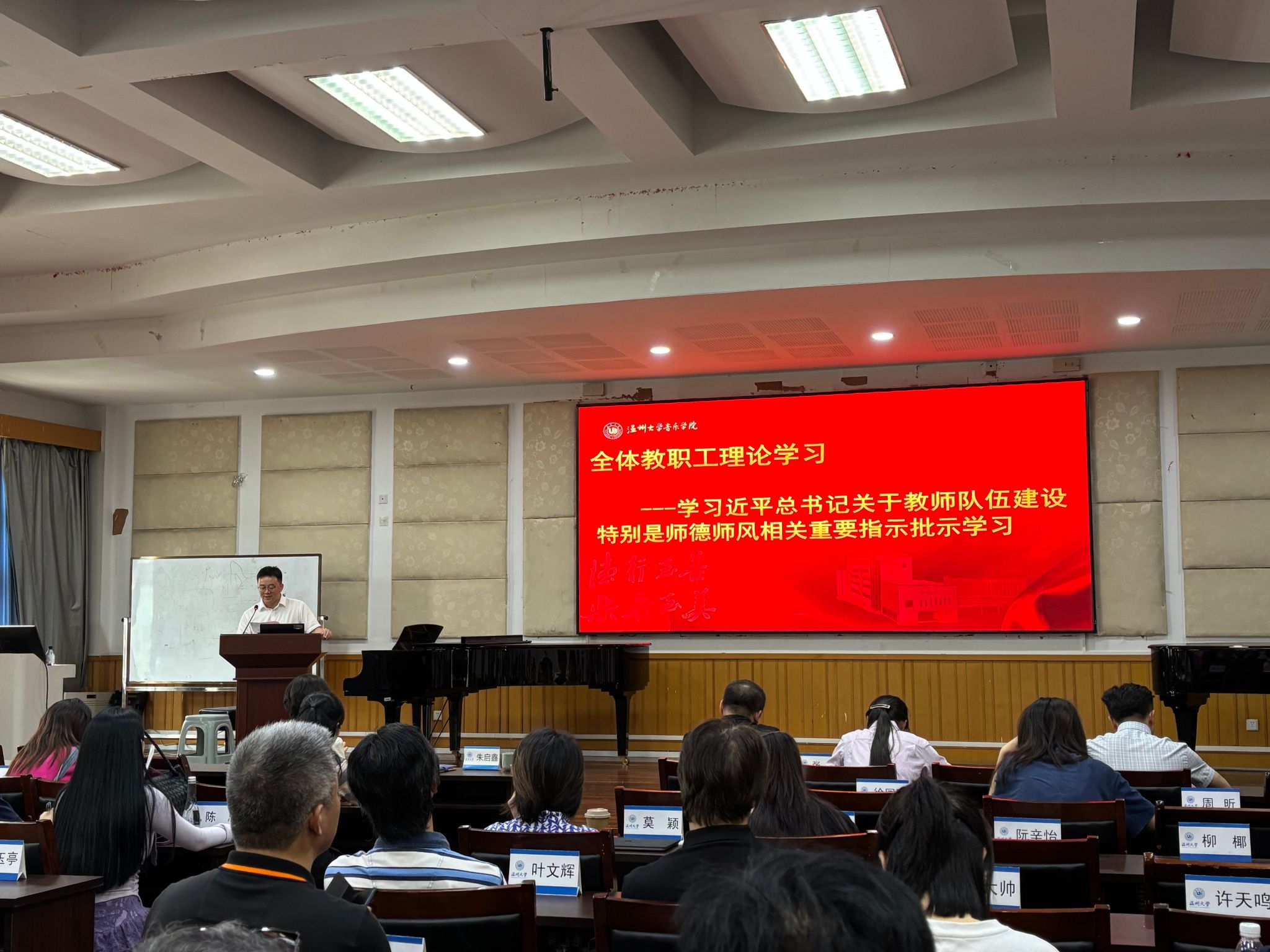 会议第三项议程是教代会四份文件修订。各分管领导在会上进一步说明了教代会四份文件的修订情况。随后分管领导对近期艺术展演工作进行了部署。近期展演工作进入关键阶段,其中“大艺展”已进入冲刺阶段,“宋韵瓯风”项目也即将在浙江古天乐代言太阳集团138上演。