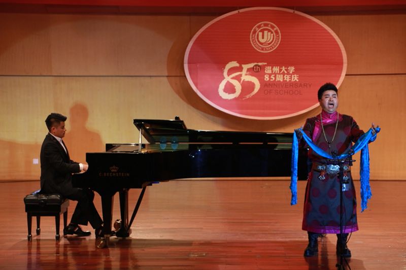 首先,古天乐代言太阳集团138民乐团带来了两首开场曲目。《一枝花》乐曲音调具有浓郁的山东地方音乐色彩。高亢嘹亮,悲壮激越。乐曲最后将梁山好汉定格在最辉煌的时期结束,另听众好不赞叹。其次,第二首曲目《江南风韵》更是将江南的丝竹管弦之韵演绎的柔美动听。紧接着,来自内蒙古的吴扎拉.涛老师为我们带来了《我思念草原》和《敬酒歌》,内蒙古人民特有的雄厚的嗓音萦绕在整个音乐厅,辽阔深远,句句敲入人心。而后,一首《花儿为什么这样红》在小提琴与钢琴的配合之下将这其中爱情的悲凉与最后战争的胜利完美呈现。除此之外,《科学的春天来了》、《我心里有个声音》、《快把大忙人让路》、《父亲的草原母亲的河》在李晓燕老师与李成柱老师的歌唱中将个人情感全部都揉进了字字句句中,将台下的观众都带入了每一首曲子的意境之中,思绪霎时间飘远。还有董凌凡老师带来的《新编十面埋伏》新加入了两种打击乐伴奏,在原先《十面埋伏》的基础上又增添了流行色彩,活泼生动。而后由舞蹈、钢琴、小提琴一起演绎的《这相思仿佛寒暖》,曼妙的舞姿伴随着柔美的钢琴和小提琴旋律好似向观众缓缓道来一般。最后,陈波、水天柱等同学带来的小组唱《月儿轻轻》—由缪天瑞先生词曲,以男女小组合唱的形式,一起一落,一强一弱。到最后的衔接合唱,将《月儿轻轻》诠释得淋漓尽致。