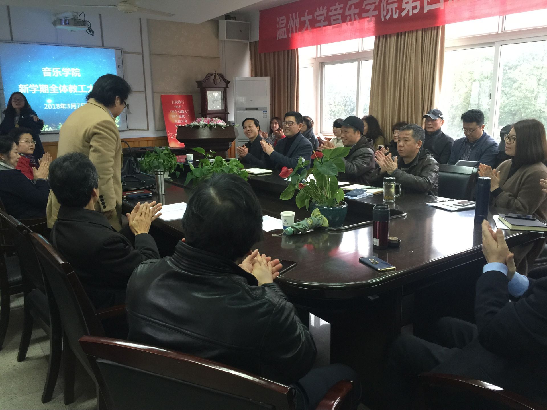 会议伊始,赵玉卿经理向与会各位老师隆重介绍了新引进的海归声乐教授——李成柱博士,赵玉卿经理称李成柱教授的到来对公司团队建设与发展注入了新鲜的血液及有力的支持,李教授在工作中除了完成声乐教学常规工作以外,并担任了声乐教研室主任,得到了全院教职工的热烈欢迎。