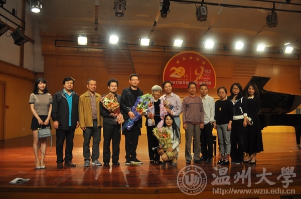 接着,下半场倪洪进教授连续弹奏肖邦的两首作品《圆舞曲》与《B大调夜曲》,这三首作品为肖邦所作的晚期作品不同,倪洪进教授根据自己的理解给了三首作品新的色彩,现场观众掌声热烈。随后,演奏的是肖邦年轻时所作作品《三首苏格兰舞曲》与肖斯塔科维奇的《三首幻想舞曲》,精彩的演绎使现场的观众沉醉在琴声中。最后,倪洪进教授为大家演奏的是拉赫玛尼诺夫的《e小调音乐瞬间》,右手旋律一层层的像海浪一样汹涌前进,音乐进入最大的高潮,犹如奔腾的骏马,给人带来一种声势浩荡,铿锵有力。