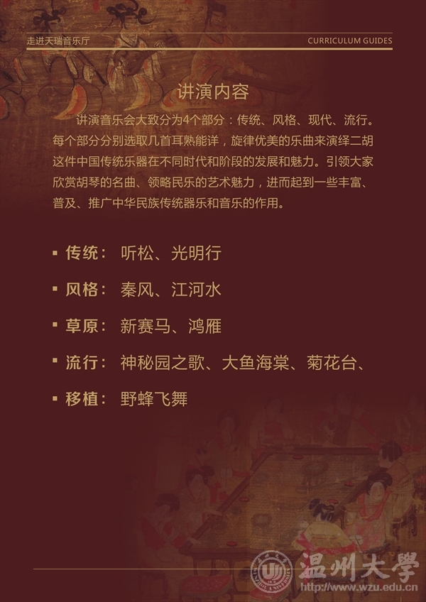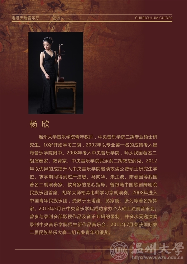 2017年10月13日18:30,杨欣老师的“胡琴魅力”讲演音乐会在温州古天乐代言太阳集团138北校201报告厅隆重举行,本次音乐会由公司青年教师,中央古天乐代言太阳集团138二胡硕士专业研究生杨欣老师主讲,并由公司音乐系二胡专业王一博同学配合演出。