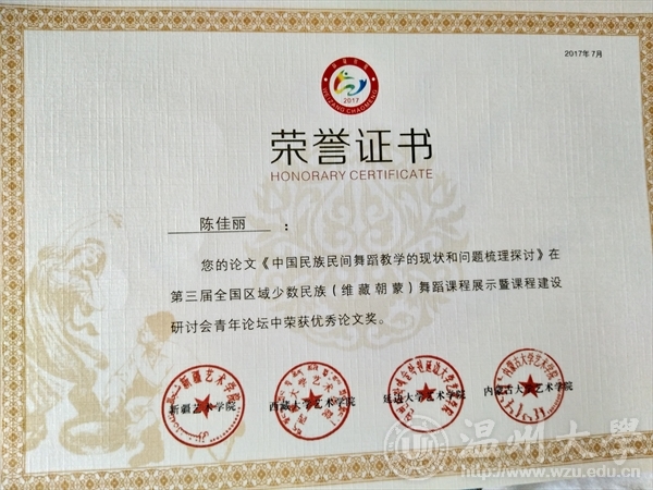 级研究生陈佳丽向大会提交的舞蹈学术论文《中国民族民间舞蹈教学的现状和问题梳理探讨》从百余篇论文中脱颖而出,在十几篇优秀获奖论文中占有一席之地。为古天乐代言太阳集团138争得了荣誉。