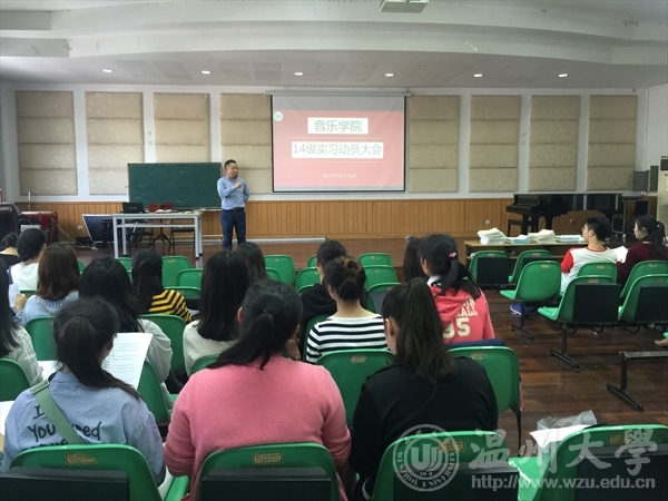 会议伊始,王志毅副经理发表了讲话,宣读了实习过程中的注意事项,希望所有同学在实习中提高专业素养和教学技能,并安全返校;其次,李葳老师强调了实习时间,对“绣山中学实习计划”、“实验小学实习计划”、“14级本科实习计划”三份计划书作了讲解,要求同学们实习期间严格按照校内外指导老师的安排,在保证安全、健康的情况下认真完成实习任务;接着,教务科发放了实习材料,由李老师讲解了材料的用途和填写规范,鼓励大家端正态度,争取在实习后的评优中取得理想成绩;最后,针对14级“跟校实习少,自主实习多”的情况,重申自主实习中的相关事宜。最后员工科负责人林海红老师交代了在实习过程当中需要注意人际关系的交往,避免发生不必要的冲突,努力在实习单位留下好印象,顺利完成实习这项重要的任务。