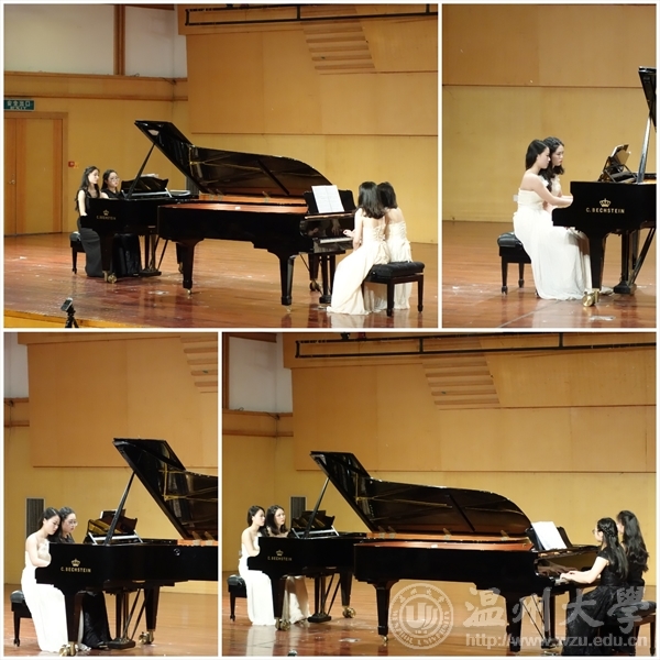 最后,音乐会的第四部分为双钢琴八手联弹。四人同时上台演出,夏倩倩、郑佳颖、张欣瑜、丁馨香四人轮流负责乐曲乐章一、二。她们给观众分别带来了圣桑曲的《骷髅之舞》、乔普林曲,凯文·欧森改编的《乔普林的拉格泰姆狂想曲》、吕成文曲,谢耿改编的《步步高》以及施光南曲,谢耿改编的《祝酒歌》。