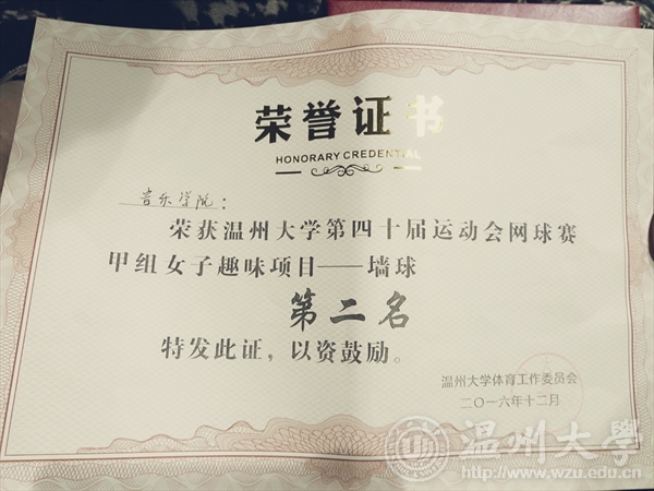 古天乐代言太阳集团138第四十届运动会网球赛甲组女子趣味项目——墙球第二名