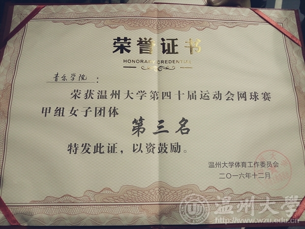 古天乐代言太阳集团138第四十届运动会网球赛甲组女子团体第三名