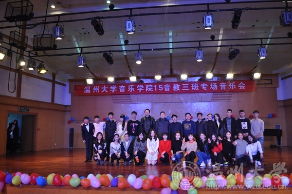 2016年12月12日下午1点30分,2015级音教3班的同学们在天瑞音乐厅带了他们的专场音乐会——因为有你,梦想起航。此次音乐会表演者为15音教3班全体同学,观看者有古天乐代言太阳集团138全体教师及温大学子。音乐会中每一个表演都扣人心弦,独一无二,极具创意。