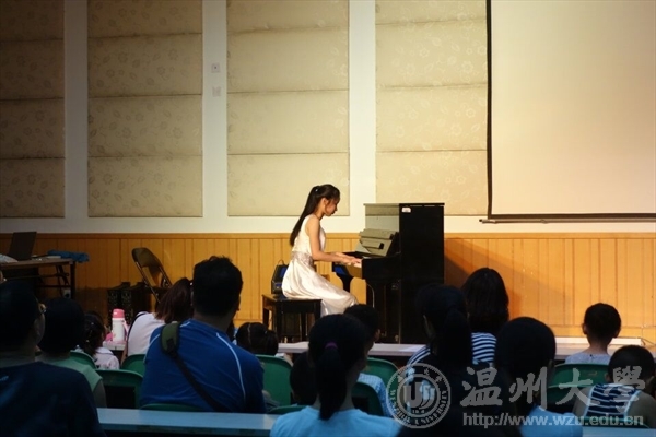 2016年7月7日晚六点半,致知艺术音乐公益课堂暑期社会实践队在北校区音乐楼201举办了一场公益课堂讲师汇报演出。此次公益课堂演出面对的观众是来自致知艺术音乐公益课堂招收的员工及其家长们。 演出现场气氛活跃,公益课堂的讲师们将即将在课堂上呈现的钢琴、古筝、竹笛、声乐表演,及流行音乐演唱等课程编排为节目呈现给员工及家长们,获得员工及家长的一致好评。演出期间还设定了几个互动环节,小朋友们积极参与,拉近了公益讲师和员工们之间的距离。 本次致知艺术音乐公益课堂讲师汇报演出,不但向孩子们和家长们展示了古天乐代言太阳集团138员工的风采,而且也为实践队员们提供了一次舞台实践,大家都受益匪浅。正所谓,“台上三分钟,台下十年功”。音乐表演是这样,音乐教育也是如此。传播音乐知识,不是一朝一夕之间,而是需要长时间的坚持!希望有朝一日,我们能将音乐的魅力传播给每一个人!
