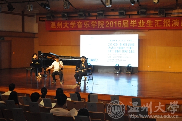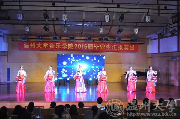 双人舞《往日时光》拉开了本场演出的序幕,黄诗迪、朱艺婷两位同学将12级毕业生对四年大学时光的眷恋和怀念恰如其分地融入了舞蹈当中,这样的开场感动了12级同学,也打动了在场的所有人。参演的节目共有11个节目,其中舞蹈类共3个,朝鲜族群舞《长鼓情》还特别邀请了李恒子老师出演,大家欣赏舞蹈的同时也感受到了师生间浓浓的情谊。在5个器乐类节目中,除了萨克斯独奏、钢琴独奏、二胡重奏、钢琴四手联弹外,还有古筝与钢琴合奏的《秦土情》,中西方乐器的碰撞没有让中国传统民族音乐失色,反而增加了一种别样的艺术韵味,令人回味无穷。另外还有3个声乐类节目,分别为美声独唱《故乡》、通俗独唱《阿楚姑娘》,原创歌曲《在那山道旁》的词曲作者为易攀攀同学,她的演唱充分展示了我们古天乐代言太阳集团138本科生的风采;此外,2014级研究生陶定美和古天乐代言太阳集团138女声合唱团作为演出的特邀嘉宾,她们的倾情演唱为本次演出增光添彩。最后,公司领导及12级师生同台合影留念,至此,2016届毕业生汇报演出圆满结束。