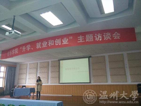 缪芸为公司14级毕业生,现任教于温州市第二十三中学。首先缪老师以音乐师范专业毕业生的身份,对两年来的求职和工作的经历及感想做了总结,并对本科所在班级员工的就业情况做了详细调查,根据调查结果对现今的音乐类本科毕业生的就业形势做了较全面的分析;接着,缪老师就自己本科四年的学习生活经验为例,使同学们明确了自己的学习目标;最后,她从学习、生活两大方面将本科学习阶段的时间划分开来,建议同学们要充分利用时间,使学习效率最大化,尽可能提高自己的专业素养,为自己积累更多的经验,以充足的准备和信心从容迎接即将面临的严峻就业形势。(教务科供稿)