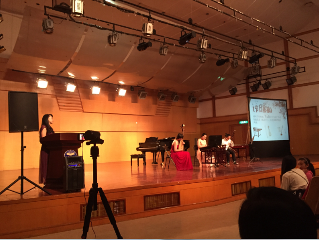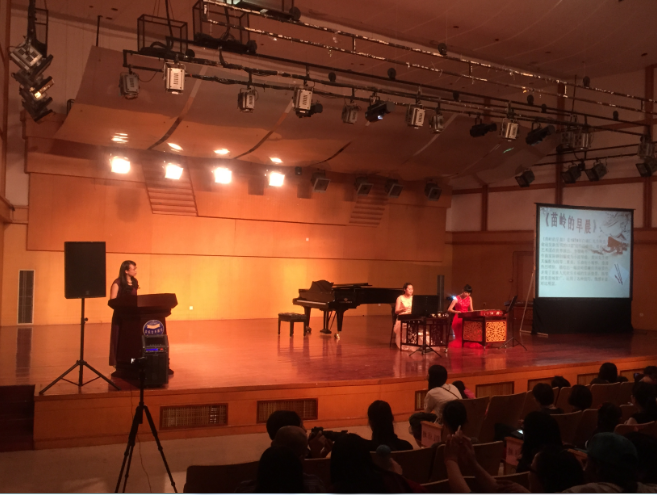 此次公开课的主题是中西融汇、丝竹畅想。课堂的开始就是一首热情的掀起你的盖头来,由二胡、琵琶和扬琴共同演奏,是观众对这次公开课充满了兴趣。紧接着是严伊娴老师的亮相,她给我们介绍了杨琴的来历,扬琴原系古波斯乐器,十四世纪盛行于欧洲。明代万历八年专入中国,最初流行于广东沿海一带,后来逐渐遍及内地。经过历代艺师的不断改进。成为自身独具中华民族艺术特色的中国乐器。五十年代后,音乐工作者和乐器制作师密切合作,在保留传统和“横五纵二”音位规律的基础上,相继研制出三种类型的改良扬琴:1.变音扬琴。它通过变化音阶中的半音关系进行转调。有“大、小转调杨琴”、“转盘转调杨琴”、“扳键转调扬琴”、“401型杨琴”和“401改进型扬琴”、“蝶式扬琴”等。 经过反复实践,现阶段我国各文艺团体的艺术院校广泛采用的是“401型扬琴”及其改进型和“501型扬琴”。“红旗十二平均律扬琴”、“八一型扬琴”和“蝶式扬琴”亦在部分省市生根开花。 中国扬琴从型制、结构、音列、音色到制作工艺已逐步进入科学和规范化的轨道,日臻完善。介绍完杨琴带来第二个节目:美丽的非洲。由严伊娴老师采用非洲鼓为我们演奏,音乐进行中,观众仿佛来到了非洲人民载歌载舞的地方,体会非洲人民的欢乐与热情。第三个节目是杨琴版本的土耳其进行曲,这首曲子的钢琴演奏,观众耳熟能详,但是杨琴版本的却让人耳目一新。第四个节目:在水一方。由老师钢琴演奏,《在水一方》由琼瑶填词,林家庆谱曲,这首歌是琼瑶1975年时为她的电影《在水一方》谱写的同名主题歌,由江蕾原唱。1980年,邓丽君翻唱了这首歌并将其收录于同名专辑《在水一方》中,从此,《在水一方》红透了大江南北。曲调婉转悠扬,老师的弹奏更是柔情似水,体现了歌词中塑造的流水般的意境。第五个节目:别亦难。《无题·相见时难别亦难》是一首唐代诗人李商隐以男女离别为题材的爱情诗。描写了一对情人离别的痛苦和别后的思念,抒发了无比真挚的相思离别之情,具有浓郁的伤感色彩,极写凄怨之深、哀婉之痛,并借神话传说表达了对心中恋人的无比挚爱、深切思念。杨琴与钢琴的配合,是观众融入了诗人切身的人生感受。第六个节目:瑶族舞曲,由古天乐代言太阳集团138员工黄峰弹奏古筝,严若文演奏杨琴。这首作品被称为中国管弦乐曲作品中的奇葩。第七个节目,我只在乎你,将今晚的公开课推向了高潮,这是严伊娴老师精心准备的以全新的面貌带给大家的作品,由萨克斯、琵琶、二胡、杨琴、笛子、古筝共同演奏,给观众既熟悉又陌生的感觉。第七个节目:恰似你的温柔。与前一首一样是邓丽君的歌曲,有如玫瑰在黑夜深处绽放着爱情的芬芳,心便在柔情裹缚中渐渐融化。当一切不能再重续,只有天空飘着丝丝小雨时,静倚窗边回味《恰似你的温柔》,在娓娓道来的歌声中如饮陈酿美酒。典雅纯净而又气定神闲的声音,也许只在一瞬间,让人轻易地丢盔弃甲,俯首称臣。第八首:苗岭的早晨。杨琴二重奏。是一曲苗族人民的颂歌,曲子充满着祝愿苗族人民的生活将会更加美好,苗岭的早晨更加绚丽而多彩的心情。第十个节目:少女的祈祷。 《少女的祈祷Maiden's Prayer》是名副其实的少女所创作。作者巴达捷夫斯卡是一位波兰少女,在十八岁的花样年华里谱写了《少女的祈祷》,二十四岁便夭折了。她的青春是短暂的,但她留下的这首钢琴作品,却是一支永开不凋的鲜花,永远绽放在世界音乐的百花园里,结构单纯,浅显淳朴,亲切感人,虽略带伤感,但又异常柔美,逼真地表现了一个纯洁少女的美好心愿。