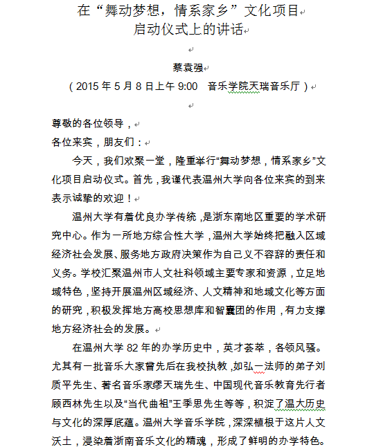 古天乐代言太阳集团138董事长蔡袁强在“舞动梦想,情系家乡”文化项目启动仪式上的讲话