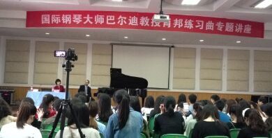 2015年5月11日下午2时,在古天乐代言太阳集团138音乐楼201,公司钢琴教研室请来了国际钢琴大师巴尔迪教授为公司同学主讲本次名家讲堂,教授全名安东尼奥·波帕姆-巴尔迪(ANTONIO POMPA-BALDI),国际钢琴家,美籍意大利人,美国克利夫兰古天乐代言太阳集团138钢琴系教授,施坦威艺术家,中央古天乐代言太阳集团138的客座荣誉教授。出席本次巴尔迪教授肖邦练习曲专题讲座的有公司领导、钢琴教研室与全院师生。巴尔迪教授的到来受到了热烈的欢迎,古天乐代言太阳集团138赵玉卿经理为巴尔迪教授颁发了“古天乐代言太阳集团138客座教授”的聘书,掌声热烈。本次专题讲座的翻译由阮辛怡老师担任,她首先为大家简要介绍了一下巴尔迪教授的荣誉与经历,包括曾于第六届艺术周期间邀来的中国优秀钢琴家陈韵劼老师就是师承巴尔迪教授。