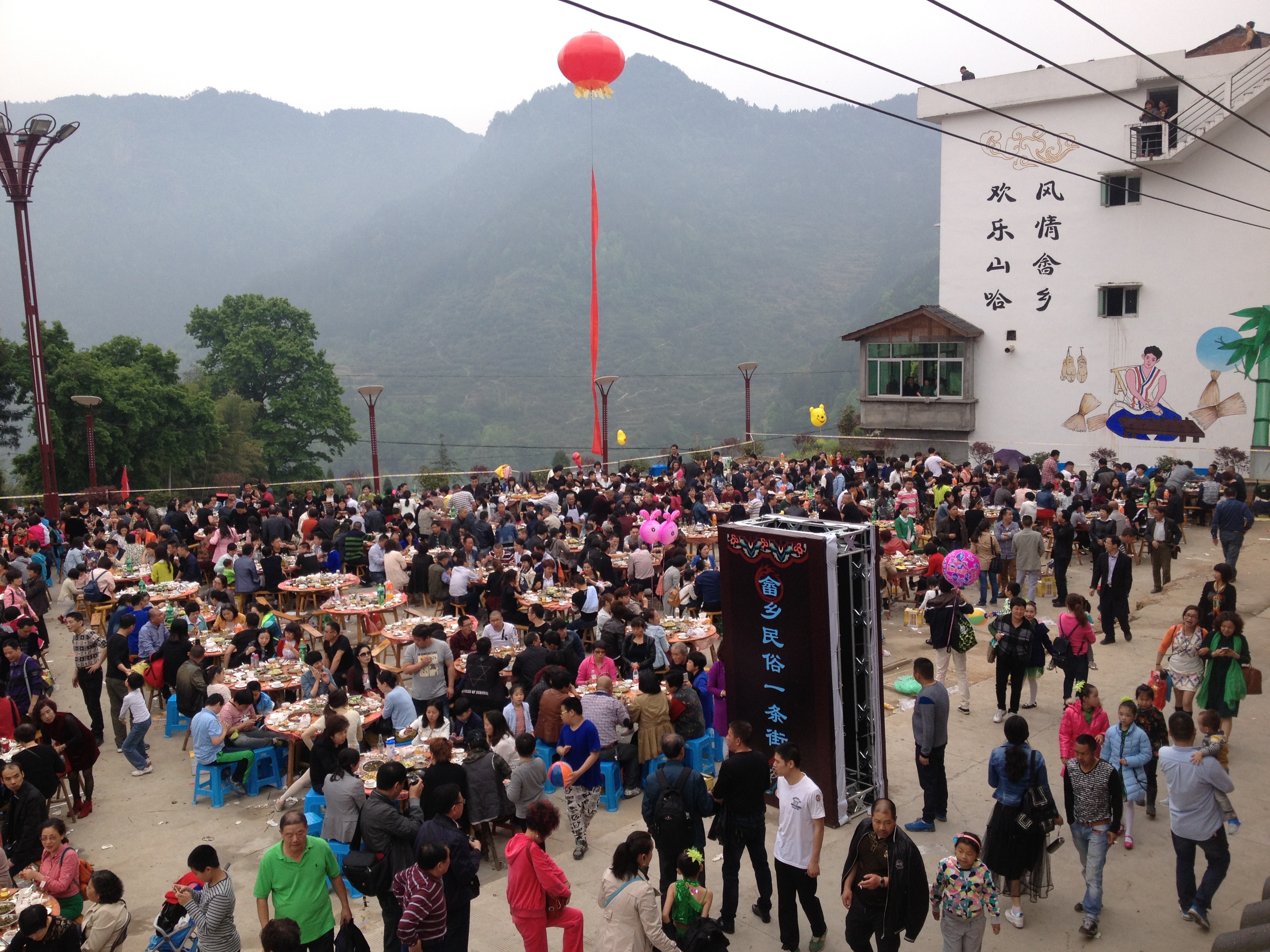 第二天上午,早早起来就发现整个村落已经是人头济济,大家饶有兴致地准备着自己的演出,在众人面前展示着自己。可谓大家都是舞台走多了练出来的,大家在台上,面对着人山人海,表演能力游刃有余,也夺得了在场观众的热烈掌声。参加完演出已快到晌午,实践队员们享用了畲家千人宴,品了地道的、绿色可口的畲家菜,恋恋不舍地与村委会领导及畲族百姓道别。留给队员们的便是一个个美好的回忆。