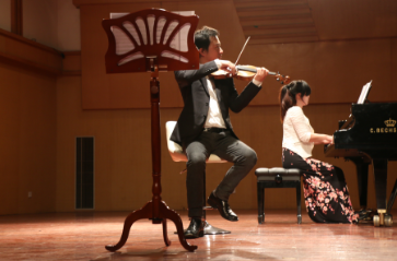 本次讲演音乐会依旧由胡锦超老师主讲,他选取了10首经典电影原声音乐,在全场观众的期待中,胡锦超老师及其夫人刘雅声女士首先以一曲动听的音乐带领大家开始这场音乐之旅,在重温了上一场讲演音乐会中的几首乐曲后。胡锦超老师为大家带来曾荣获1991年法国恺撒奖包括最佳导演、最佳影片、最佳音乐在内的七项大奖的一部出色的巨作《日出时让悲伤终结》的配乐,《日出时让悲伤终结》是一部关于艺术家的电影,而这样的电影注定也是一场音乐的盛宴。在音乐会中,胡锦超老师也邀请了公司优秀的男中音于琨为全场听众带来了选自《费加罗的婚礼》中的《你想要跳舞吗,我的小伯爵》,其灵动活泼的旋律,获得了全场听众的赞赏。接下来胡锦超老师为全场观众带来了由著名音乐家久石让编曲的《千与千寻》和《魔女宅急便》的插曲,音乐在这两部影片中显得尤为重要,久石让的简约主义风格使宫崎骏的动画电影里充满想象力和梦幻意境,起到了画龙点睛的作用,胡老师及其夫人的合奏顿时把大家带入了影片之中,琪琪的善良可爱,千寻的勇敢坚强打动了许多听众。最使大家振奋的是胡老师的夫人刘雅声女士也为在场听众带来了一段钢琴独奏——热播剧《来自星星的你》中的一曲《start love》,在屏幕中大家看到了都教授和千颂伊的爱和分离,感人至深,由于大家对本部影视都比较了解,场面显得更加活跃。 最后胡老师与其夫人一起为大家献上了《Indigo Waltz靛蓝色的华尔兹》,这是首曲子将哀愁和激情深埋于内心,似为悄然别去的恋人而作的平静的华尔兹舞曲。轻柔的钢琴开始,接着小提琴的悠扬缓缓流出,如诗一般的钢琴在悠扬的小提琴声中楚楚动人。在柔和的钢琴与小提琴合奏中,本次音乐讲演会也到此结束了,胡锦超老师及其夫人为大家带来的两场音乐盛宴一定也会成为这春天的纪念。美妙的岁月总是短暂,美妙的日子还在延续。“走进天瑞音乐厅”音乐公开课堂下周同一时间我们不见不散,让我们共同在音乐中收获实现梦想的力量!