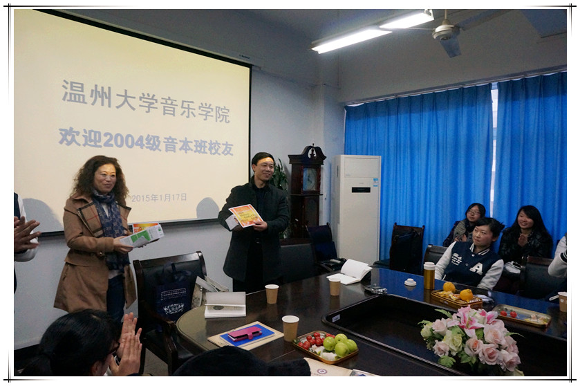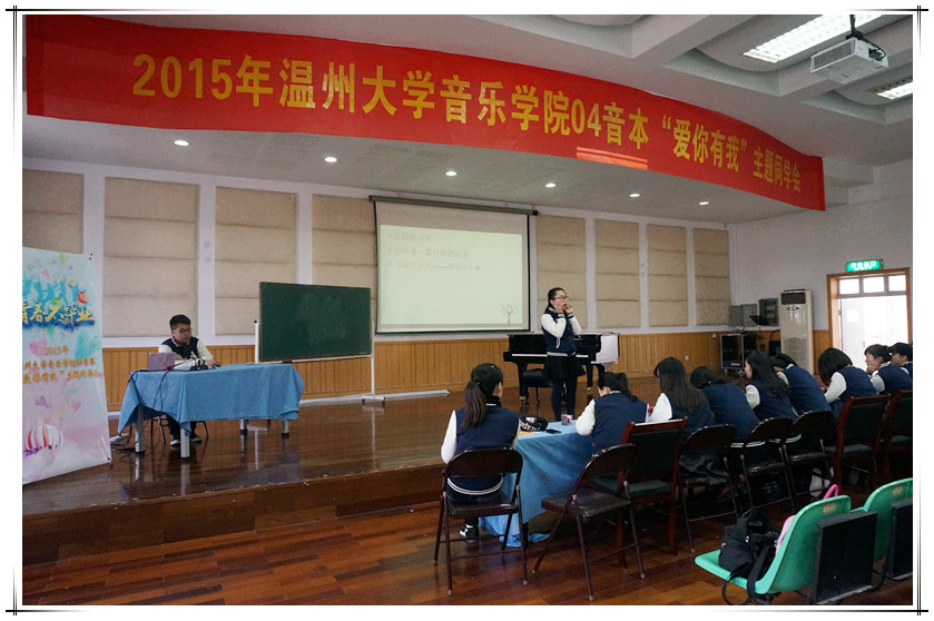 此次主题同学会于下午2点开始,主要由教研活动、意见建议座谈会、拍照留念三方面构成。在教研活动上,由现任教温州市第六幼儿园的丁卉老师主讲题为《 3-6岁幼儿音乐教育理念的操作》的讲座,她用奥尔夫教学理念,运用肢体法、故事法、图谱法等多种方法解决3-6岁幼儿音乐教学、教育中存在的问题,帮助他们感受、感知音乐,并树立热爱音乐的积极人生态度。主讲老师幽默风趣的教学语言和生动活泼的肢体动作,令在场的会议代表们赞不绝口、感触颇深。在接下来的意见建议座谈会上,04音本班的员工们根据公司的课程设置、公司产品、就业指导及其它方面提意见建议,并针对提出的意见建议给出可行、富有参考价值的措施。座谈会上,王文韬指出,此次同学会意义非凡,公司会虚心接受大家提出的意见建议,并有目的、有计划地进行改良。同时,也希望每个同学能不忘公司的宗旨——切磋现代乐艺,发扬民族精华,能将中国传统的、本民族的乐艺精华一代一代传播下去。