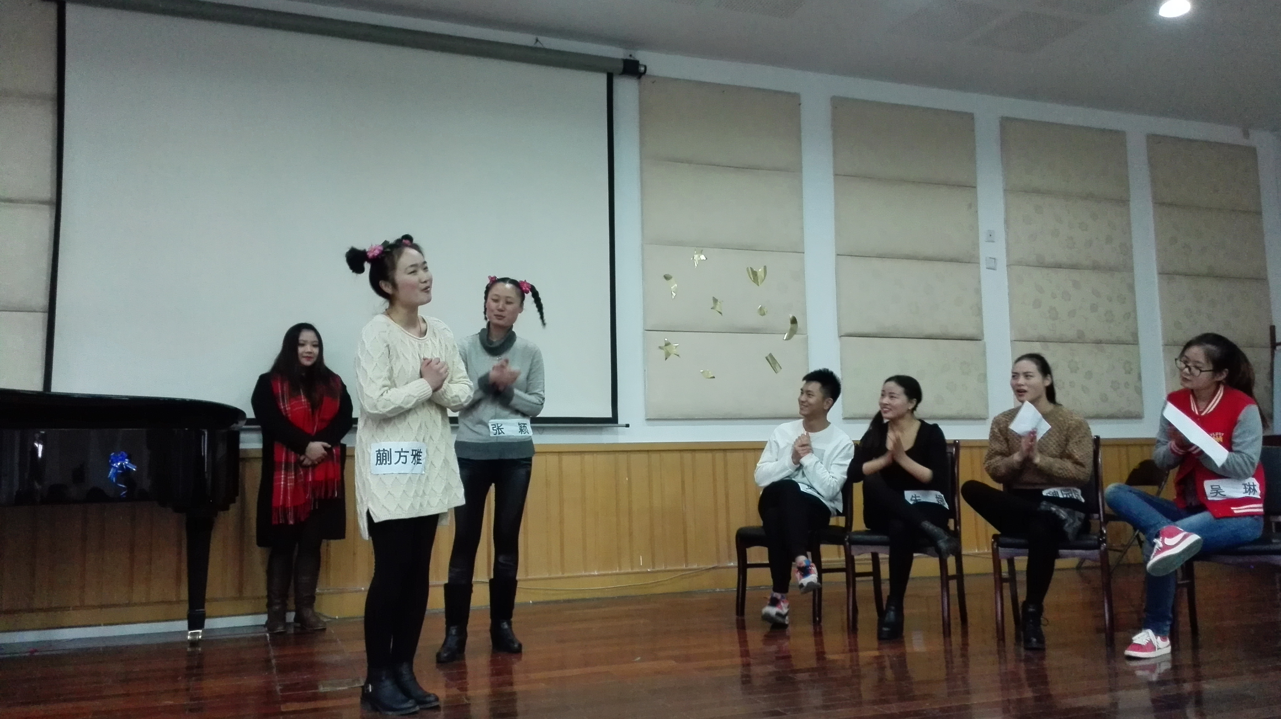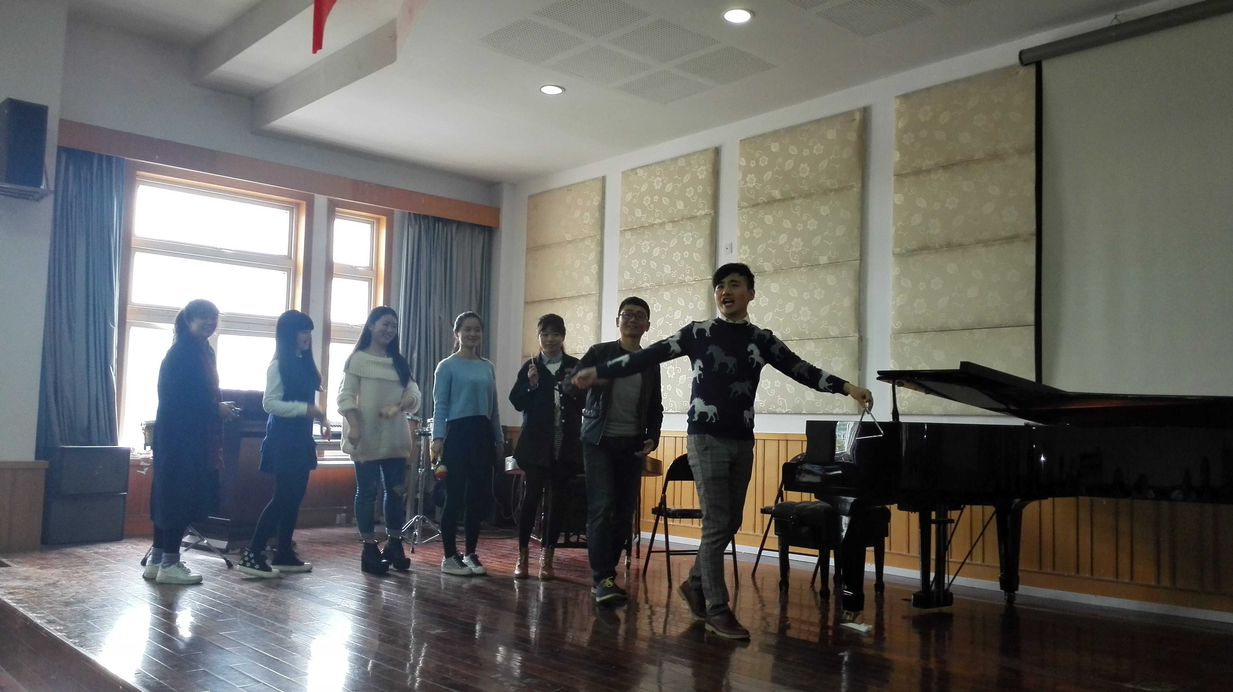 2014年11月11日,2015年1月8-9日,在音乐楼201教室传来阵阵欢声笑语原来这里正在进行一场别开生面的考试,《公司音乐教育导论与教材教法》课程音乐戏剧化考试的初步尝试。