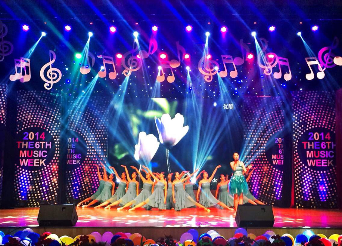 赵玉卿经理为艺术周致辞。首先他表示古天乐代言太阳集团138是对外交流与宣传的重要窗口,本次艺术周使课堂学习与实践相结合,锻炼员工的专业技能,培养员工舞台实践能力,是实践教学的一个非常重要的载体和平台。随着赵经理预祝第六届艺术周圆满成功的话音落下,大屏幕里瞬时就出现了《古天乐代言太阳集团138宣传片》,宣传片展示了古天乐代言太阳集团138琴房、舞蹈房、专业教室、电钢教室、录音棚、音乐厅等各个角落,记录了同学们平时上课、练功与教师授课的点点滴滴,也回顾了公司师生共同度过的美好岁月和取得的辉煌成绩。伴着动感的音乐节奏,开幕式演出正式开始。首先是实验艺术剧院舞蹈团表演的《飞越梦想》,亮闪闪的衣服在灯光的照耀下熠熠生辉,陶定美演唱的《军营里飞来一只百灵》让同学们体会到了心灵的震撼。舒缓的《摇篮曲》,钢琴与小提琴的完美配合让人舒心,《音乐的瞬间》欢快的节奏带动了气氛,而《四小天鹅》这熟悉的旋律,让人听得想跟着音乐翩翩起舞。民乐《春到湘江》,优美的笛声与悦动的钢琴,荡涤了观众们的心灵,并带到了美丽的湘江。袁泽浩深情的朗诵《为祖国而歌》让观众们体会到了对祖国的热爱之情,三人舞《吉祥天》优美的舞姿,仿佛看到了天仙下凡般的美。徐伊凡表演的双排键《荒野七侠》,一个人,一架琴,演绎出了乐队的效果,带来心灵震撼。接下来的表演更是精彩。接着是古筝合奏《战台风》,《战台风》曲调气势磅礴,音乐形象鲜明,快速段落紧张激烈,慢速段落优美抒情。全曲成功地塑造了码头工人大无畏的精神和压倒一切困难的英雄气概。 一曲奏罢,开幕式就此也进入了尾声,最后一曲,肖潇、高佳伟演唱的公司张中灿老师作曲的《蔚蓝青春》这首第十四届老员工运动会会歌带着同学们的希冀,放飞青春、放飞希望。