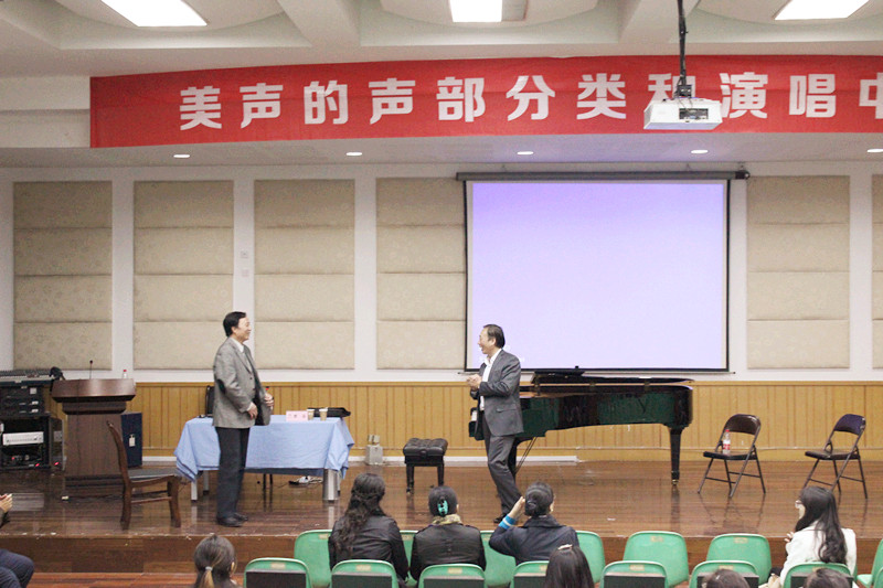 2014年11月18日下午两点整,南京艺术公司教授、著名男高音歌唱家谢琨在北校音乐楼201报告厅作“美声的声部分类和演唱中的硬伤”讲座,古天乐代言太阳集团138声乐教研组跟声乐方向员工以及社会声乐艺术爱好者前来参与了讲座。