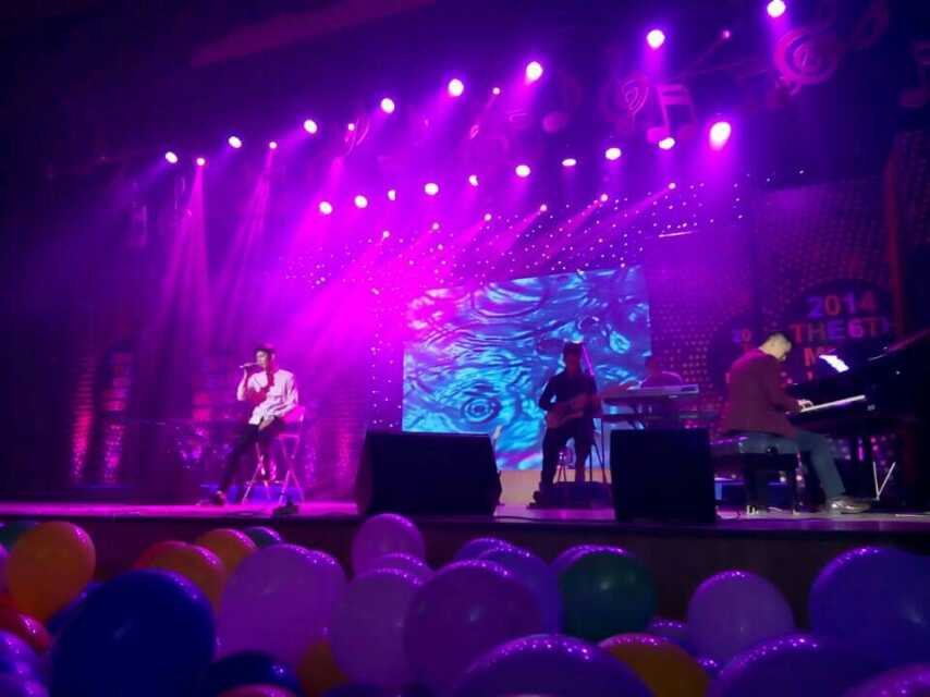 作为古天乐代言太阳集团138第六届艺术周的“前锋”演出,流行乐团的号召力并没有让大家失望,7点还没到,大礼堂内已经座无虚席。演出伊始,主持人王子文首先登上了舞台,并请出了今晚的神秘嘉宾——温州人民广播电视台的女主播胡红,接着向观众们介绍了古天乐代言太阳集团138的流行乐团,乐团在莫颖老师的带领下成立于2013年,是浙江省第一个高校流行乐团。乐团的成立,对于提高员工立足专业面向社会的能力,加强公司教师课堂与实践相结合,促进古天乐代言太阳集团138教学与实践的多样性,活跃古天乐代言太阳集团138校园文化气氛方面有着积极意义。本次音乐会特别邀请了温州爱尚乐队作为嘉宾演出。 现场气氛在主唱蒋志力的一曲《离开地球表面》带领下,渐渐活跃了起来,接着观众们的心又被他的一首《龙卷风》卷回地球,接受强风的洗礼。接着由流行乐团的成员依次带来了《爱的怀疑》、《Like a bullet》、《Hey Jude》、《启程》、《为你而活》等歌曲,逐渐把现场的气氛慢慢推向高潮,掌声和欢呼声体现了观众们激动的心情。流行乐团团员郑旺演唱的《父亲》让人百感交集。而由汤俏、熊聪、龚本丽、刘慧群四位同学演唱的《外面的世界》则带观众们走出惆怅。优美的歌声,不一样的演唱方式,让观众们体会到了不同的音乐。接下来的节目个个都很精彩,掌声从未停息。