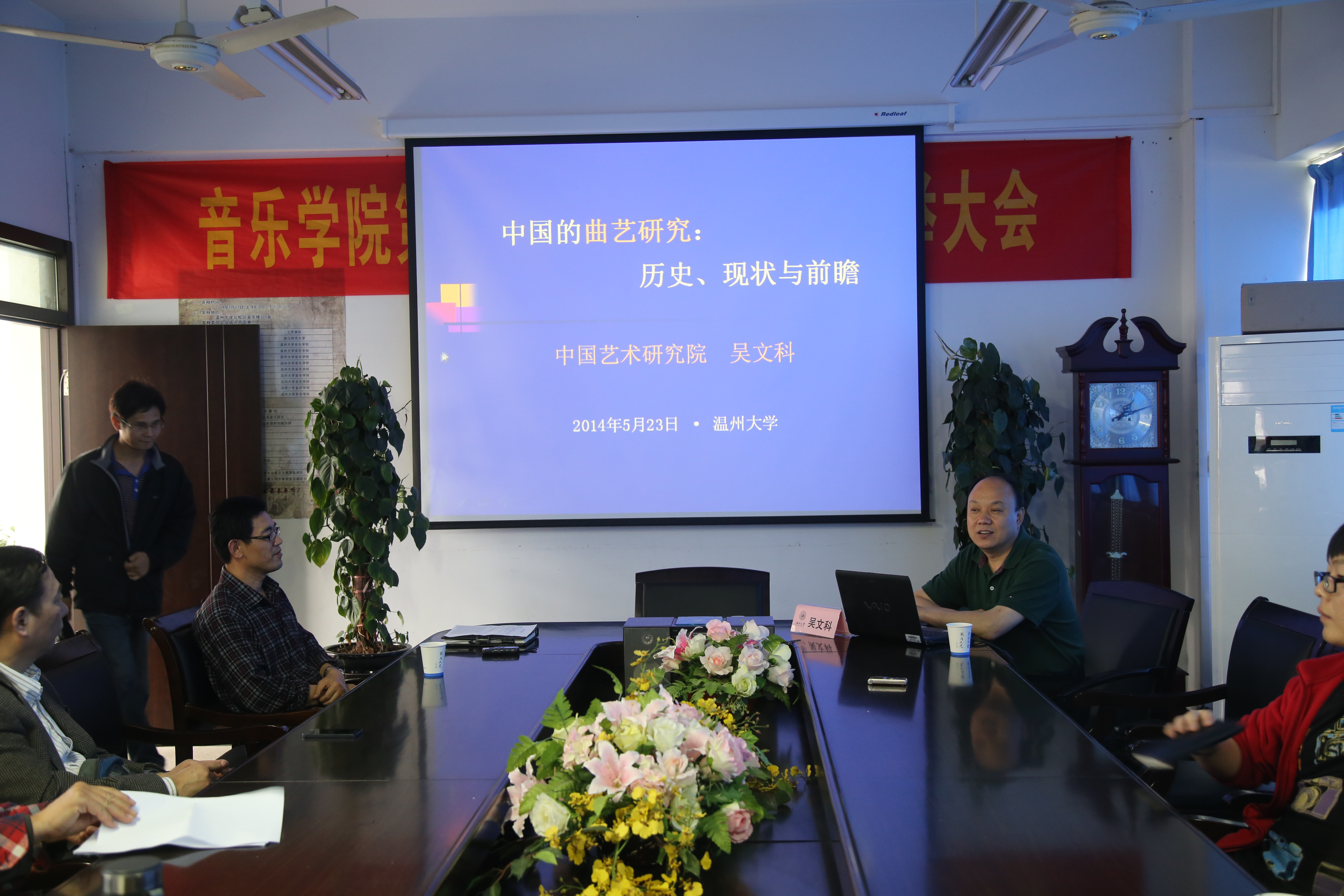 5月23日(周五)下午14时,公司特邀中国艺术研究院曲艺研究所所长,研究员,博士生导师,中国曲艺家协会副主席,国家非物质文化遗产保护工作专家委员会委员吴文科教授莅临举办了主题为“中国的曲艺研究:历史、现状与前瞻”的学术讲座。讲座正式开始之前,赵玉卿经理对吴文科教授的研究领域做出介绍,对其学术成果做出高度评价,公司多位教授、老师及全体研究生出席本次会议。
