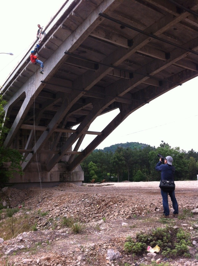 下午1点整,员工干部在培训师的带领进行户外“桥降活动”,即在高达60余米的桥上端滑到桥下端。这个活动极大程度的考验了队友彼此间的信任与细心。在大家彼此的团结帮助下,全部员工干部都圆满完成此次“桥降”任务,爱好摄影的刘书记还为每一位同学全程记录下了大家成功挑战自我的瞬间。
