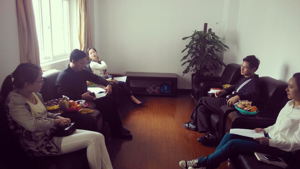 2014年4月14日10点30分在音乐楼三楼接待室开展理论教研室教研活动,参与本次教研活动的是理论教研室教师王文韬老师,蔡军老师,邓深海老师以及公司员工吴慧群、张静、许慧菲。