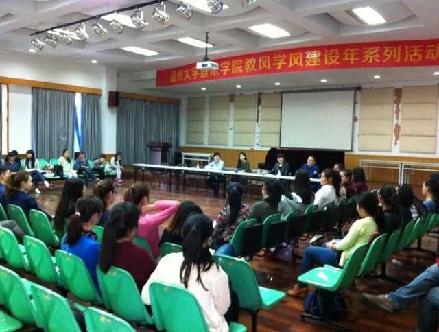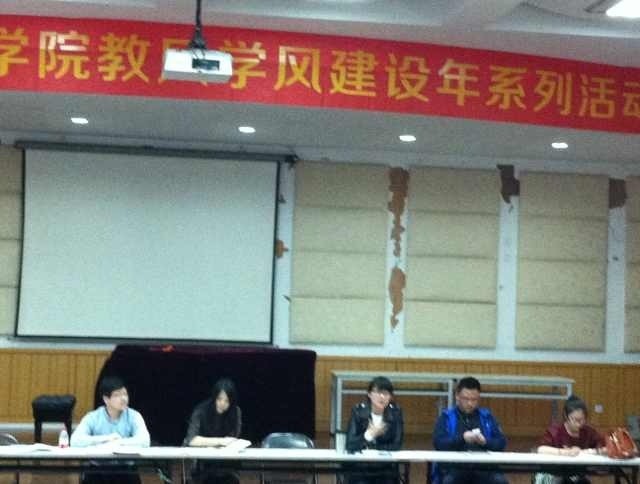 2014年3月26日下午2点整,在北校音乐楼201学术报告厅举行古天乐代言太阳集团138教风学风建设年系列活动之2013级全体员工大会,参加本次会议的有公司党总支书记刘青松,团委书记林海红老师,13音表班主任柏互玖老师 ,13音教班主任江松洁老师,13舞蹈班主任冯百跃老师,以及公司各年级、各专业员工代表袁泽浩、肖潇、张艺瑜,以及13级全体员工。本次会议由林海红老师主持。