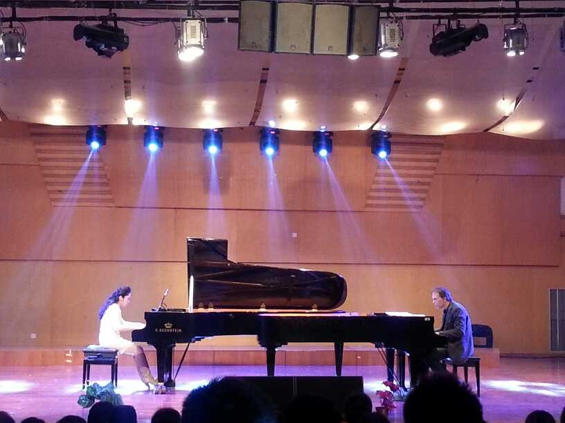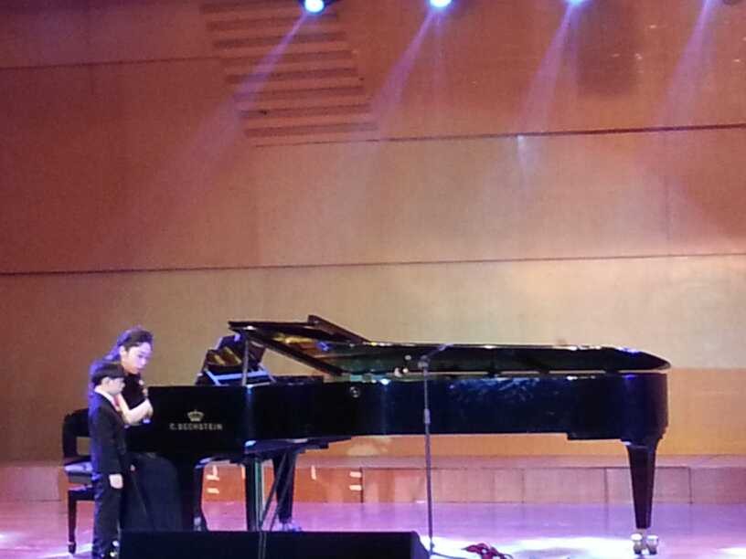 之后,是溯初学区十佳冠军易攀攀大展歌喉,一曲《离不开你》唱出最美好的爱情,现场的气氛被点燃。Alex和莫颖老师双钢琴演奏的《D大调卡农》与《亚历山大的爵士乐队》引起现场观众的热烈关注,琴声让大家都如痴如醉,仿佛来到了钢琴音乐的天堂。这之后,是流行乐团团员高佳伟演唱的《洋葱》,陈选择原创歌曲《让心知道》,都让大家内心十分感动。由莫颖老师和嘉宾何靖、张海敏一同演出的室内乐三重奏,感动在这一刻渲染全场。情歌王子傅克想的《小情歌》,可爱熊猫严志逊的《别找我麻烦》都令人觉得内心为之心动。张中灿张老师作曲的《童年记忆》是由莫颖老师和她的儿子付熙恩一同演绎的,稚嫩的琴声,加上莫老师精湛的琴技,引起大家的热烈掌声。之后就是王皓璟演奏的献给小猫咪咪的《咪咪与闹钟》,李杰鹏副经理与合唱队合作的《你快回来》,仇慧敏演奏的《Jazz Fantasy on Mzart》,张中灿老师与莫颖老师钢琴弹唱的《第十三首歌》,都赢得现场的热烈掌声。