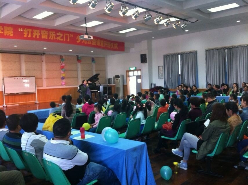 2013年11月16日上午9点,少儿音乐知识公益课堂在北校音乐楼201正式开班。公司领导及负责老师,报名的小朋友与家长都参与到了开班仪式中,开班由王文韬副经理主持并介绍本堂授课老师——张辉伟老师为公益课堂上音乐知识入门课,通过安静小朋友的方式讲了乐音和噪音的区别,并通过做小游戏了解了休止符极其作用,让小朋友初步了解并充分掌握基础。最后通过小朋友个人才艺展示让讲师成员了解各个小朋友并且给每个小朋友都安排了指点老师。