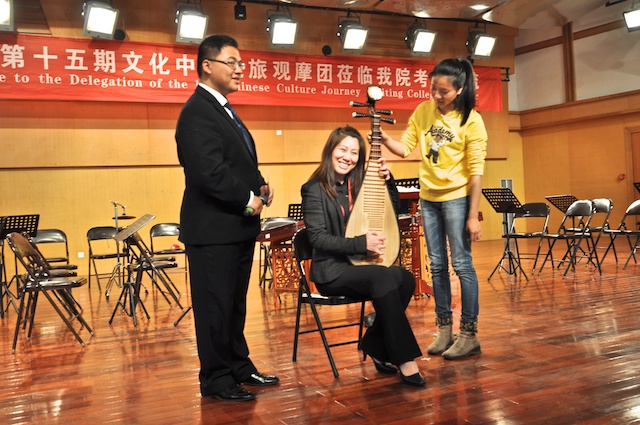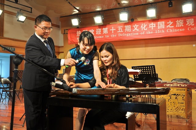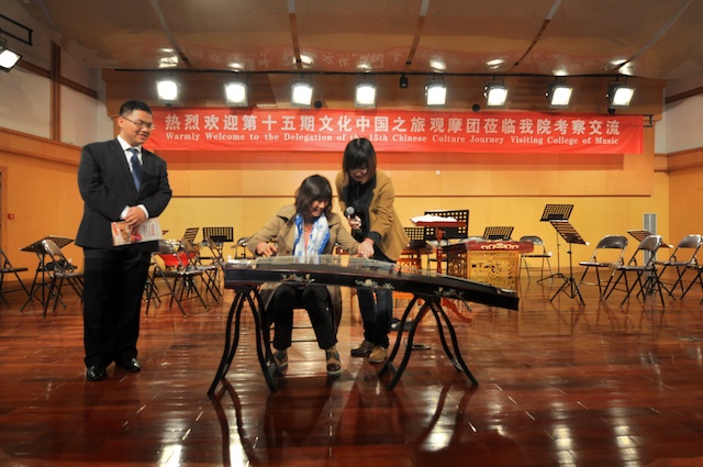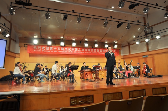 个国家和地区。在公司期间,观摩了公司民乐团校庆节目的排练,赵玉卿经理向来宾介绍了公司的基本情况,用视频短片展示了公司艺术周活动的精彩镜头。同时,公司部分同学向观摩团的成员们表演了古琴、二胡、古筝、琵琶和笙的独奏节目,互动环节,欢声笑语,气氛活跃!观看节目后,来自俄罗斯、美国、菲律宾、泰国的社团负责人纷纷表示,中国音乐文化源远流长,中华民族乐器魅力无穷,民乐团同学们精彩演出,让人大开眼界、深受启发!并热情邀请大家到国外交流、留学。