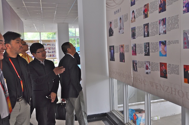 最后,观摩团成员还饶有兴趣地参观了缪天瑞先生“百年音乐人生”图片展,在公司楼前拍照留念。