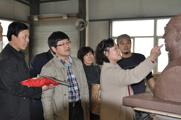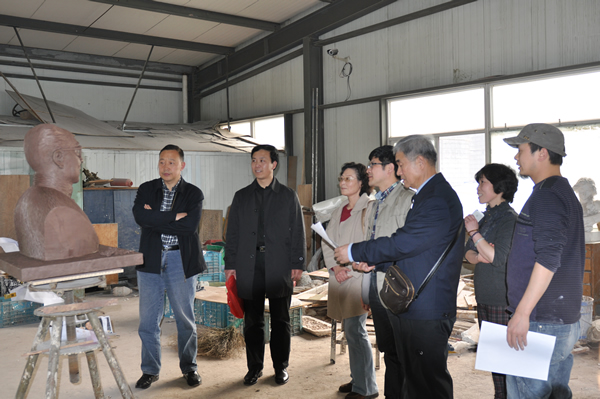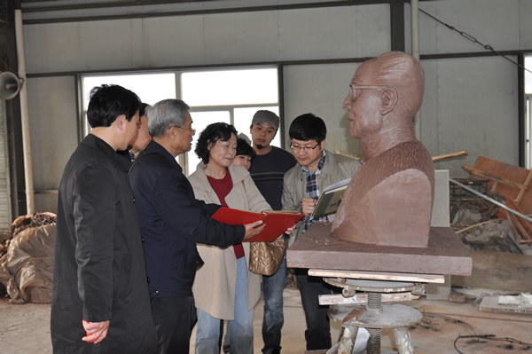 3月29日,在公司党总支书记刘青松、副经理王文韬和校宣传部童传武老师陪同下,缪天瑞先生的亲属到杭州现场确认铜像设计制作方案。