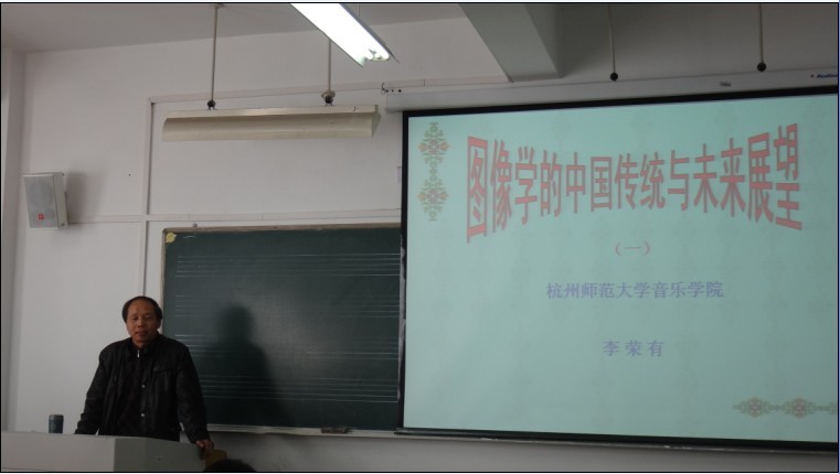 李荣有教授专长研究汉画乐舞图像学,主持完成国际级课题1项,省部级课题5项,在权威期刊和国际国内学术会议发表学术论文50余篇,创立我国第一个中国传统乐舞艺术图像学研究专业方向。本次讲座,李教授从中国图像的文化渊源“河图”、“洛书”、“八卦”说起,认为图像在学术研究中也占有重要的地位,并且为师生展示了多幅有关音乐的汉代石像的图片。讲座的最后,陈其射教授发言,评价了图像学在音乐研究中的作用,认为音乐研究者接触图像学会更好的有助于学术研究。